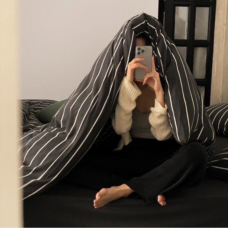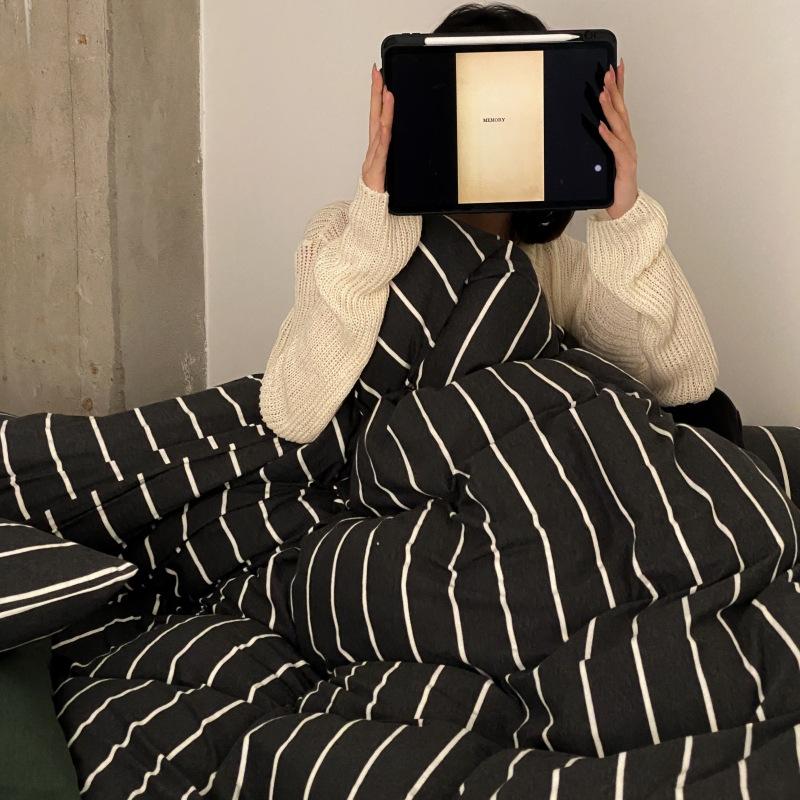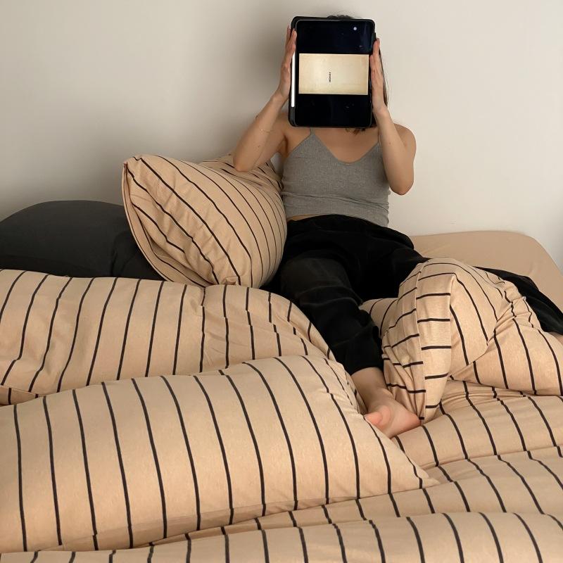 Pendurar para secar: Dobre a roupa de cama várias vezes antes de secá-la ao sol. Não a pendure para secar diretamente. Pendurá-la para secar diretamente esticará o tecido, o que causará pilling. Como o tecido da fibra está danificado, a probabilidade de pilling aumentará.