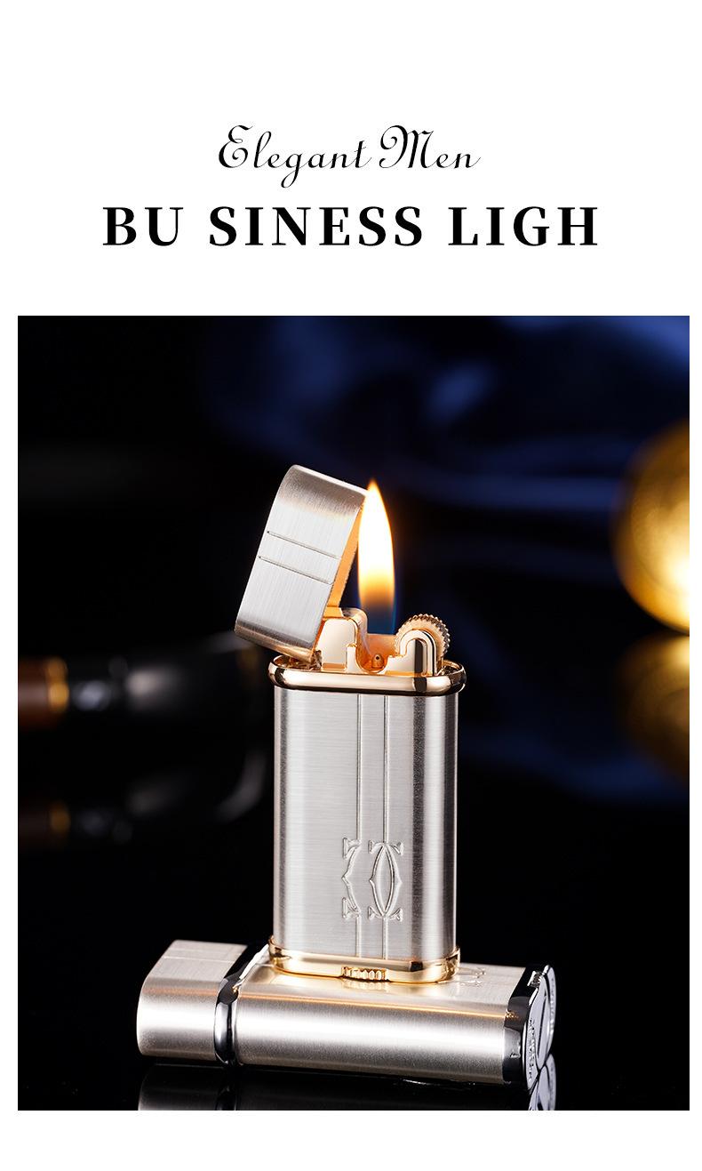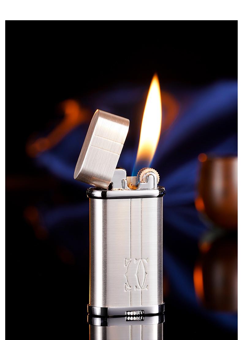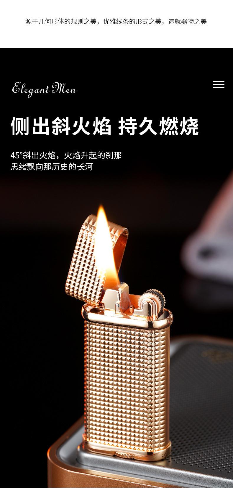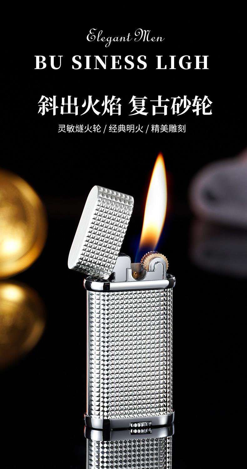 Isqueiro de fogo oblíquo elegante, roda de moagem, fogo aberto, retrô, clássico, criativo, de alta qualidade, isqueiro inflável, namorado de alto valor