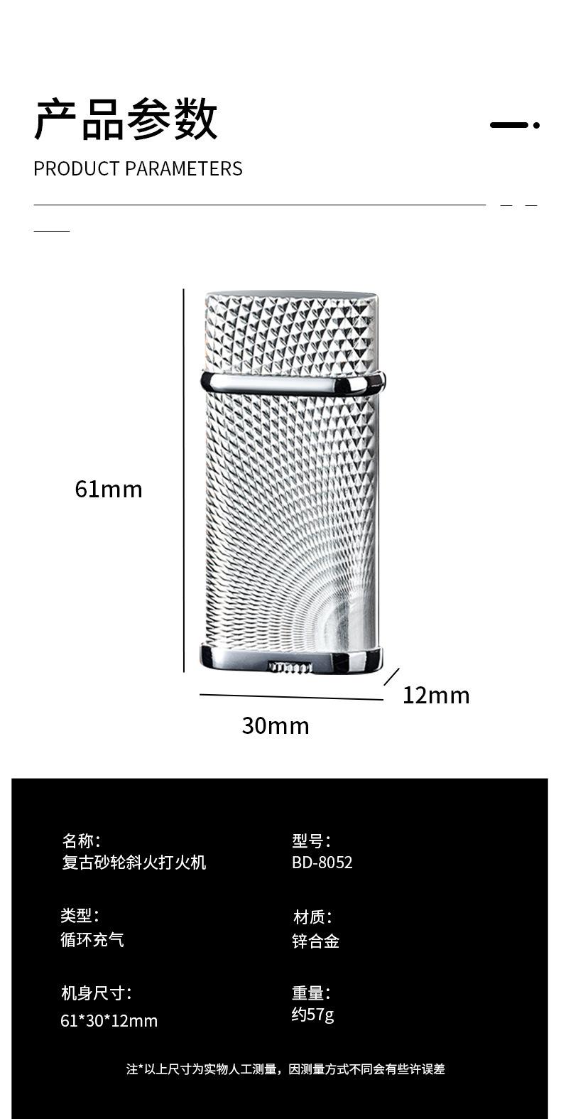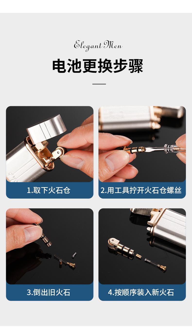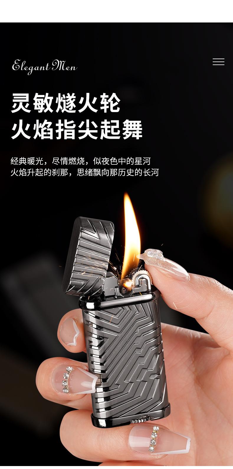 Isqueiro de fogo oblíquo elegante, roda de moagem, fogo aberto, retrô, clássico, criativo, de alta qualidade, isqueiro inflável, namorado de alto valor