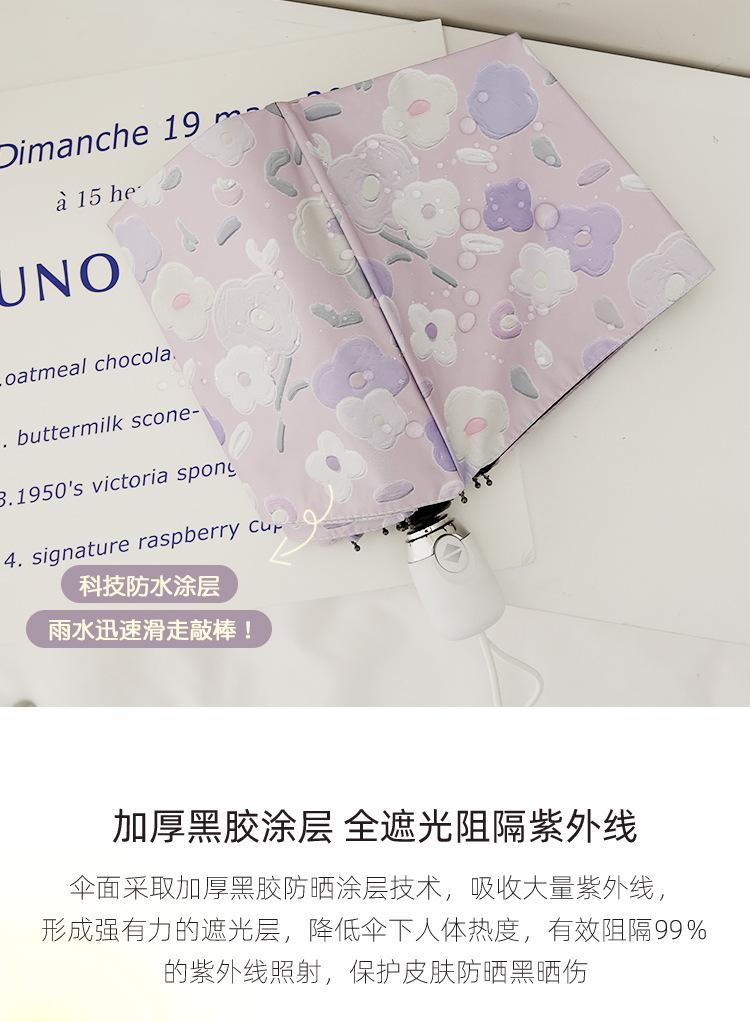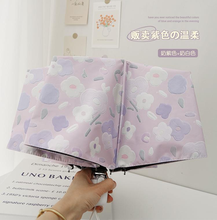 Guarda-chuva de bolso portátil pequeno com cinco dobras florais roxo, proteção solar, proteção UV, guarda-chuva de publicidade automático de três dobras