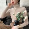 Camisola de lã feminina outono nova meia gola alta assentamento camisa outono einverno versátil estilo ocidental manga comprida desgaste interno slim top