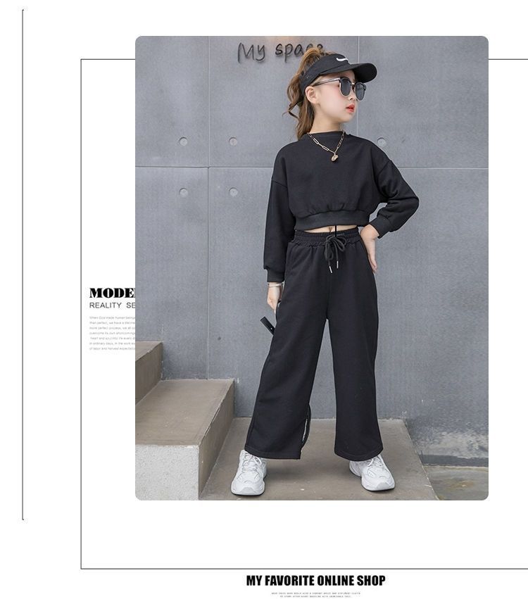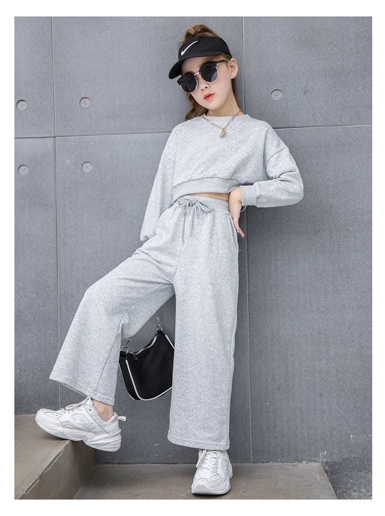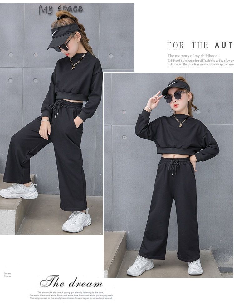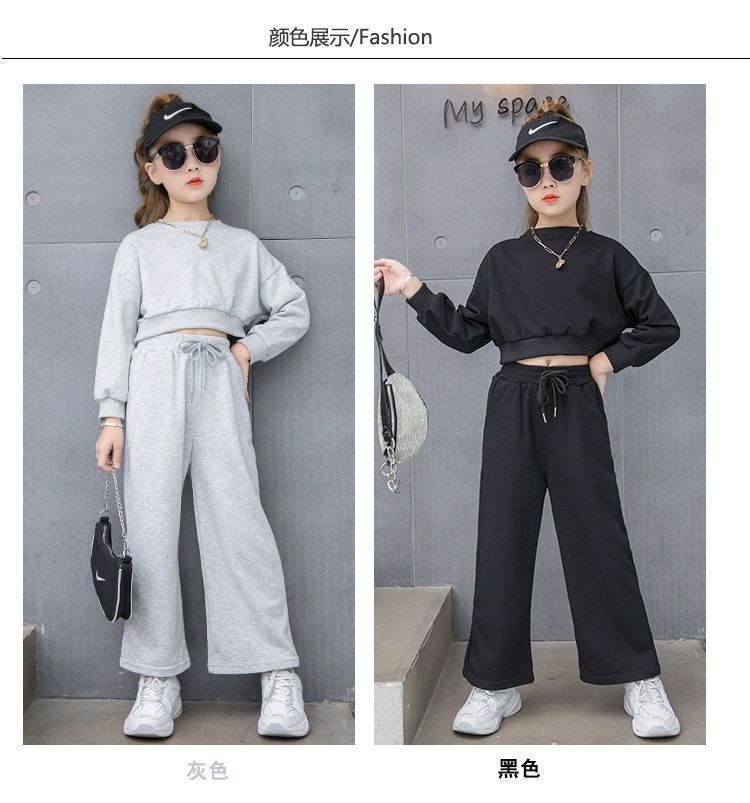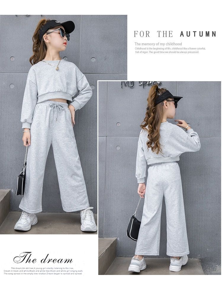 Compre Conjunto para Meninas 2024 Primavera e Outono Novo Moda Celebridade da Internet Blusão Curto Moderno para Menininhas Calças de Perna Larga Infantis Médias e Grandes Roupas Infantis no atacado no Joom.pro