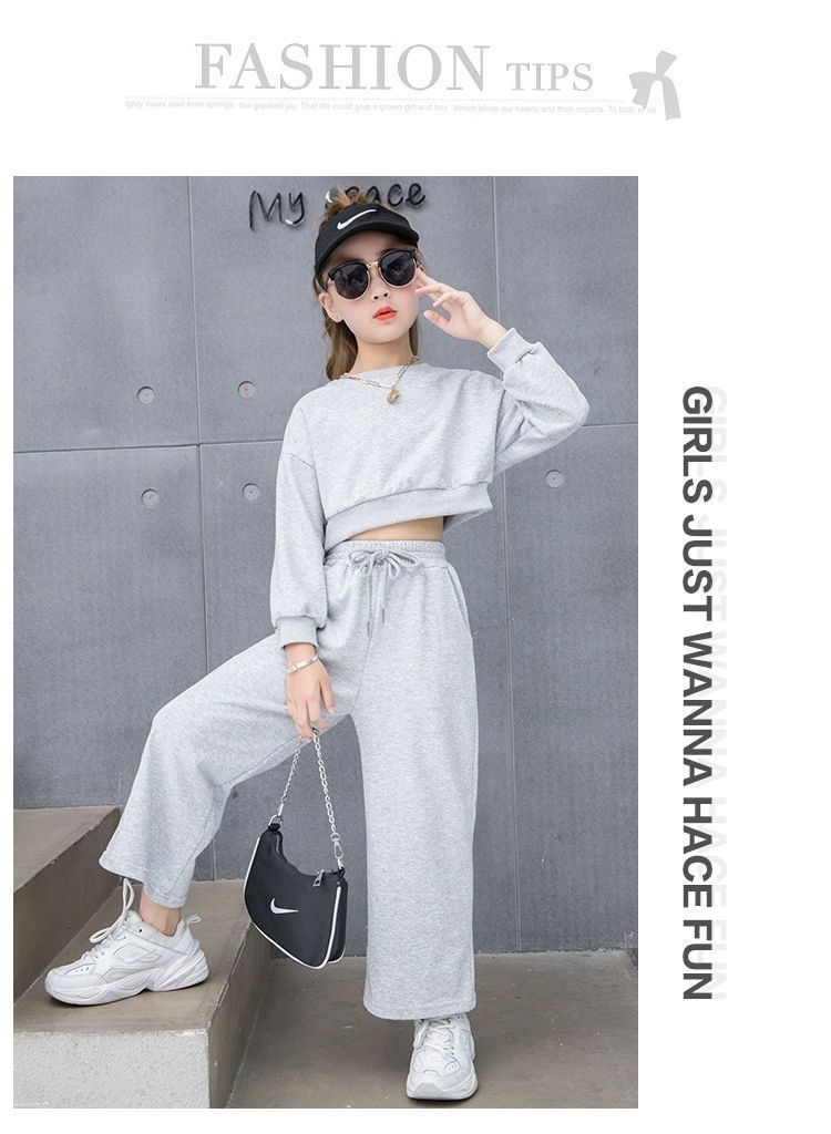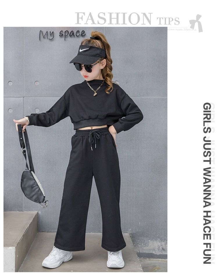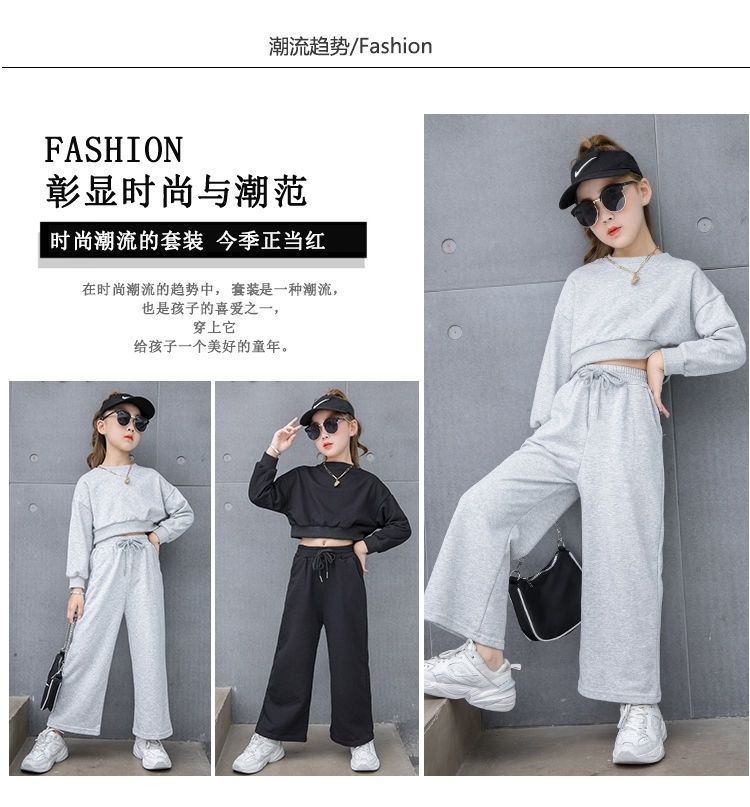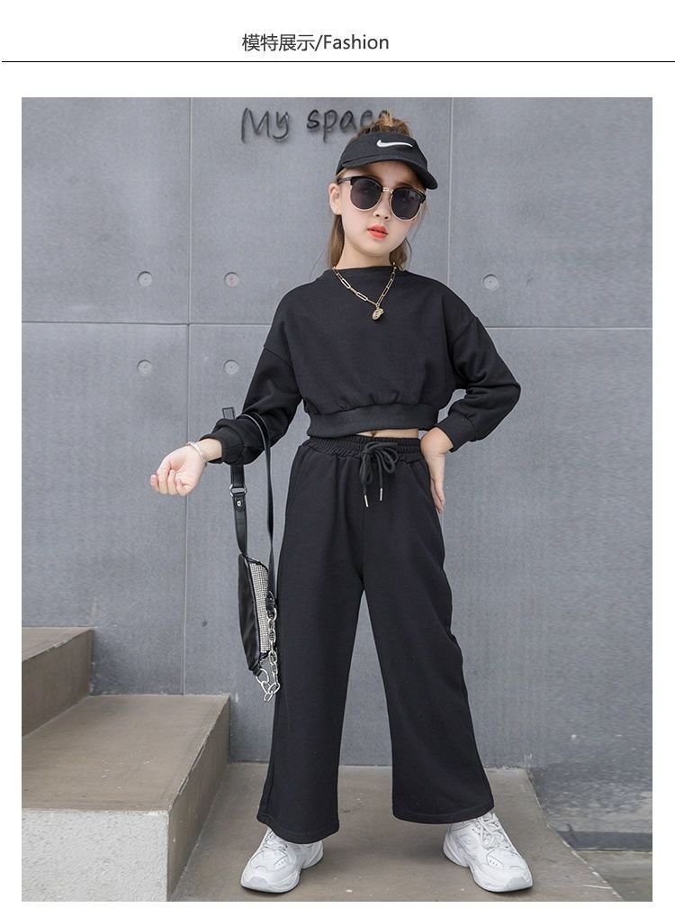 Compre Conjunto para Meninas 2024 Primavera e Outono Novo Moda Celebridade da Internet Blusão Curto Moderno para Menininhas Calças de Perna Larga Infantis Médias e Grandes Roupas Infantis no atacado no Joom.pro