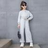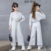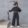 Conjunto para Meninas 2024 Primavera e Outono Novo Moda Celebridade da Internet Blusão Curto Moderno para Menininhas Calças de Perna Larga Infantis Médias e Grandes Roupas Infantis