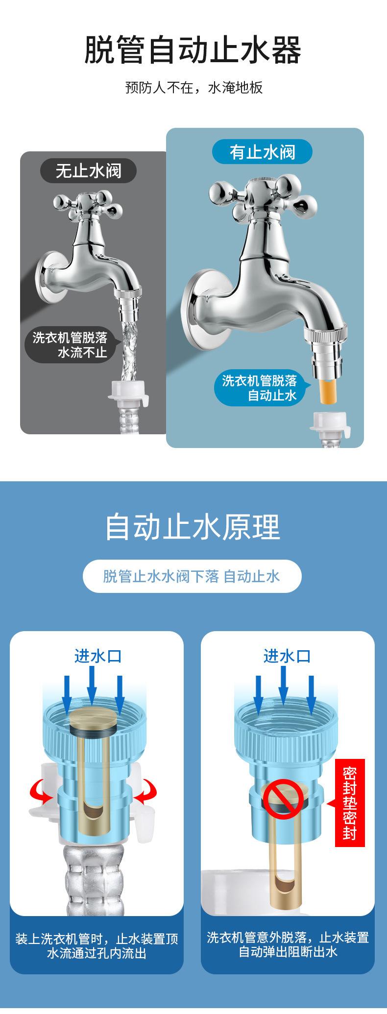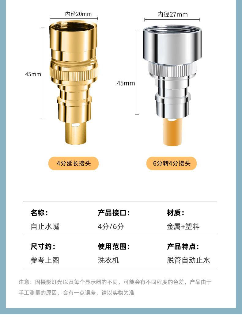 Adaptador de torneira de máquina de lavar roupa bico de parada automática de água cobre 4 pontos adaptador acessórios 1/2 6 pontos entrada e saída de água