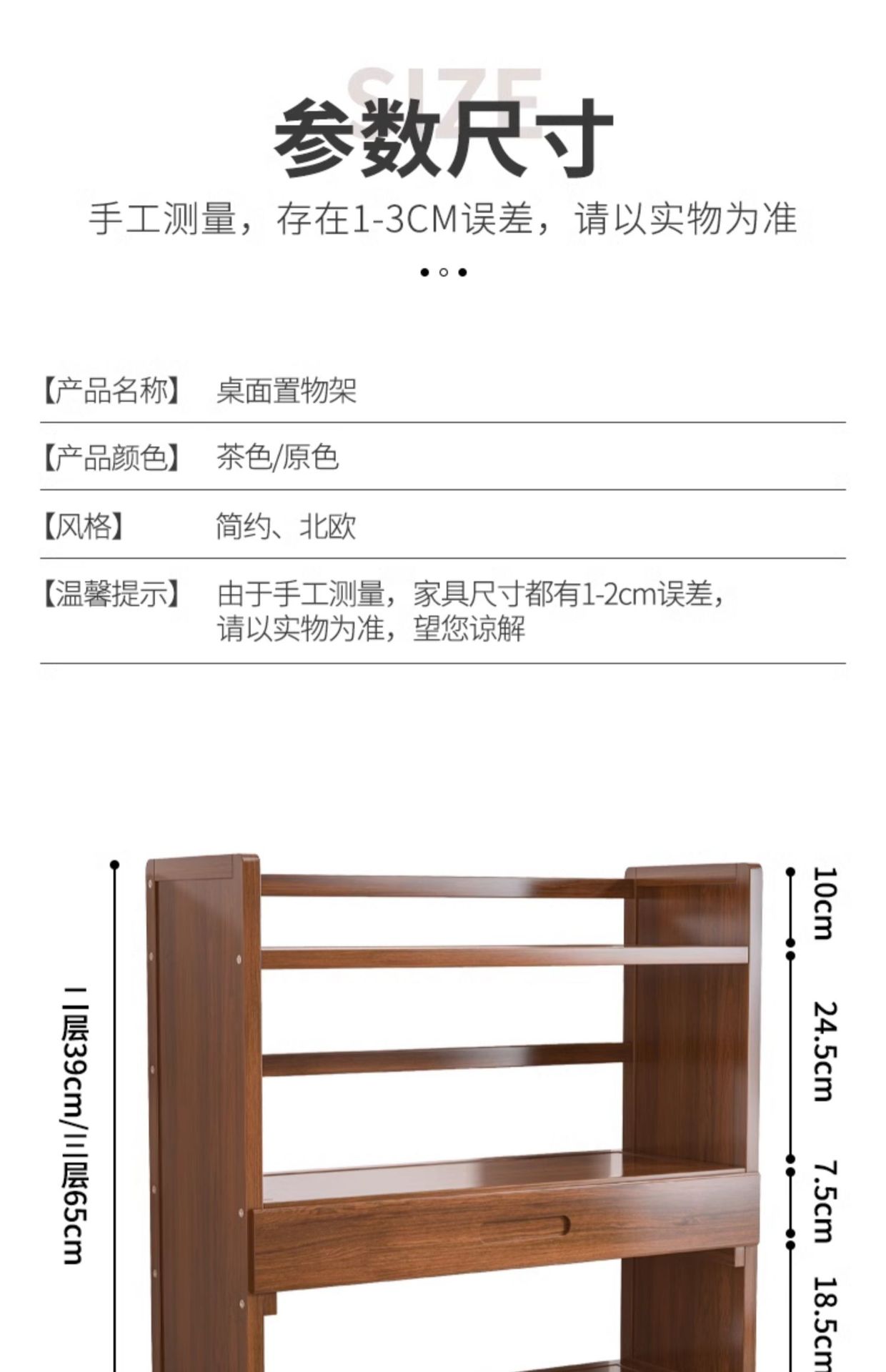 Rack de armazenamento de mesa Estante de madeira maciça Estação de escritório Estação de escritório Rack de armazenamento multicamadas Rack de montagem de mesa de estudante doméstico
