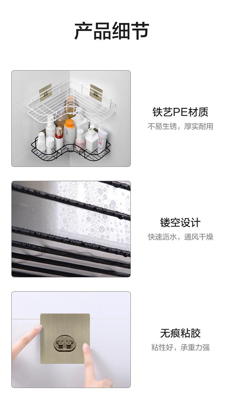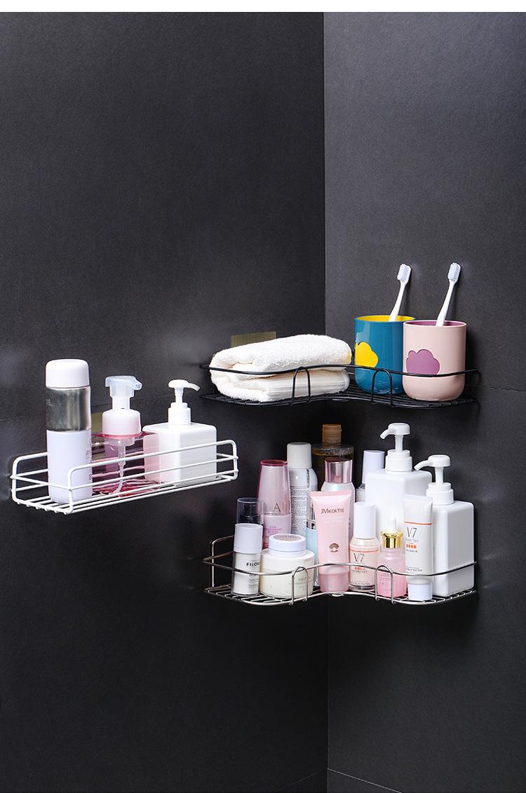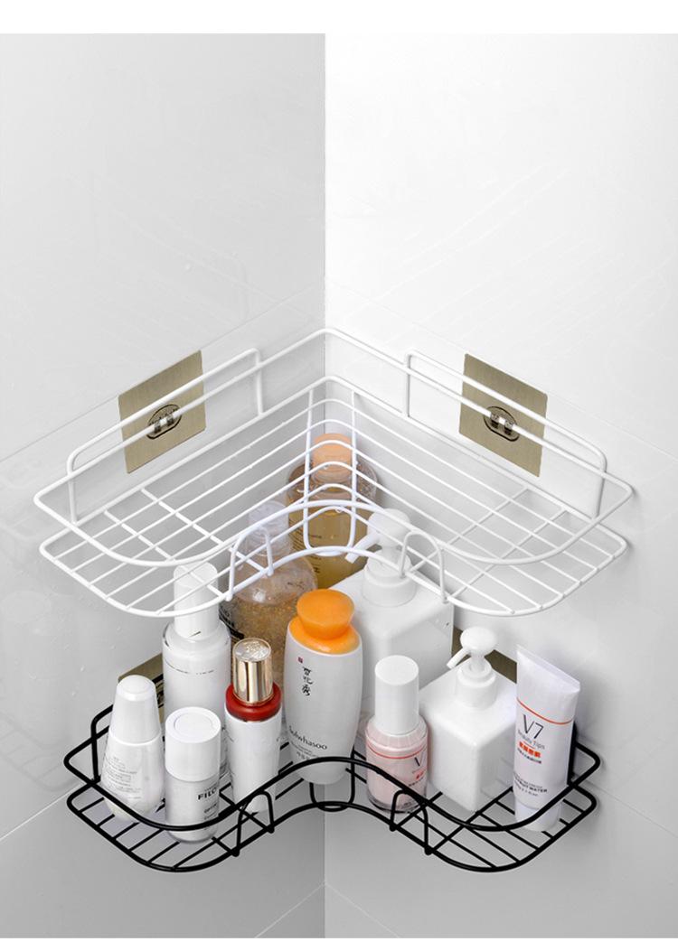 Rack de armazenamento de banheiro Ferro Banheiro Vaso sanitário Rack de armazenamento sem perfuração Mesa de lavagem Rack de armazenamento triangular montado na parede