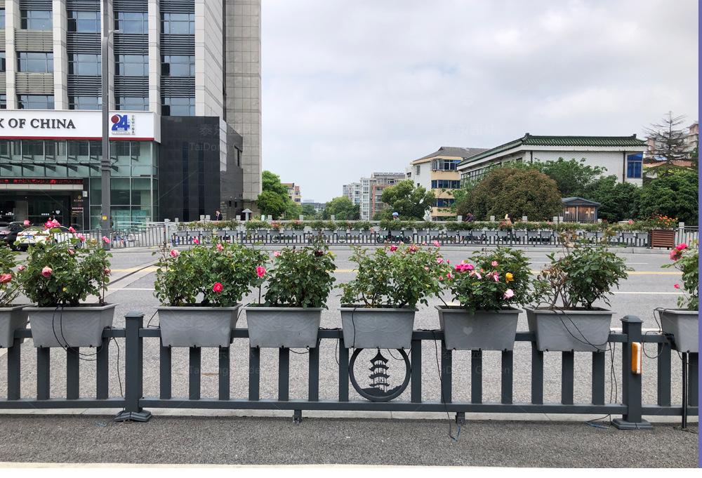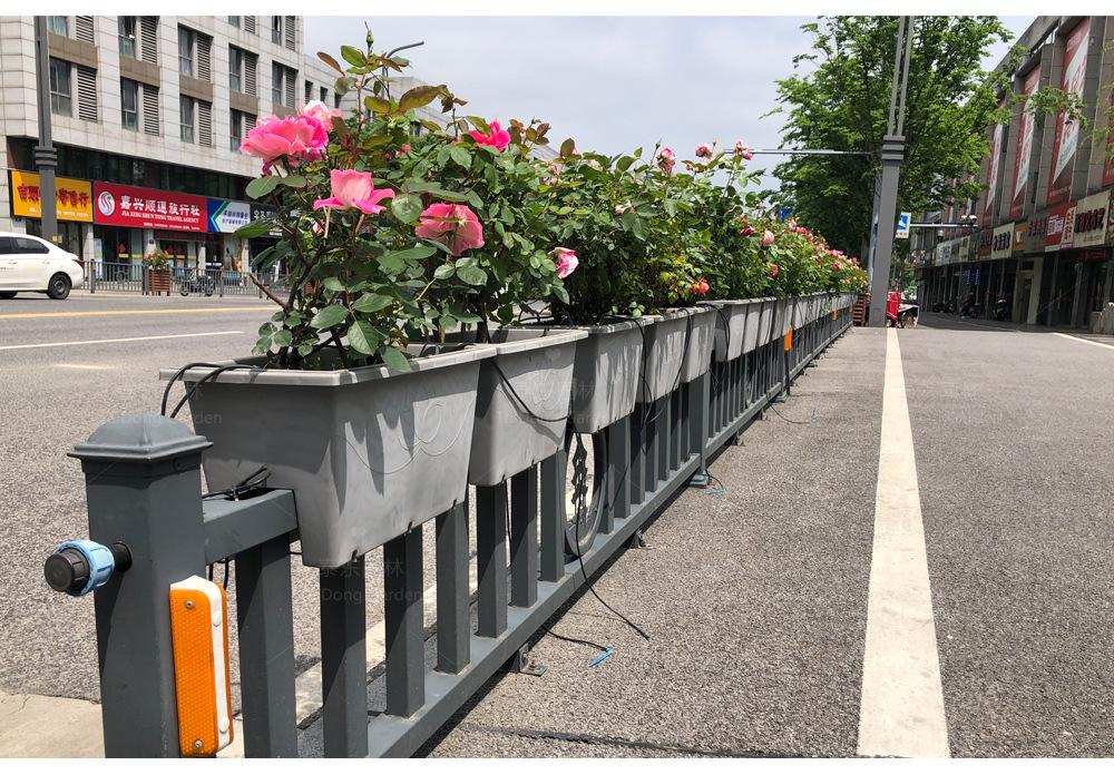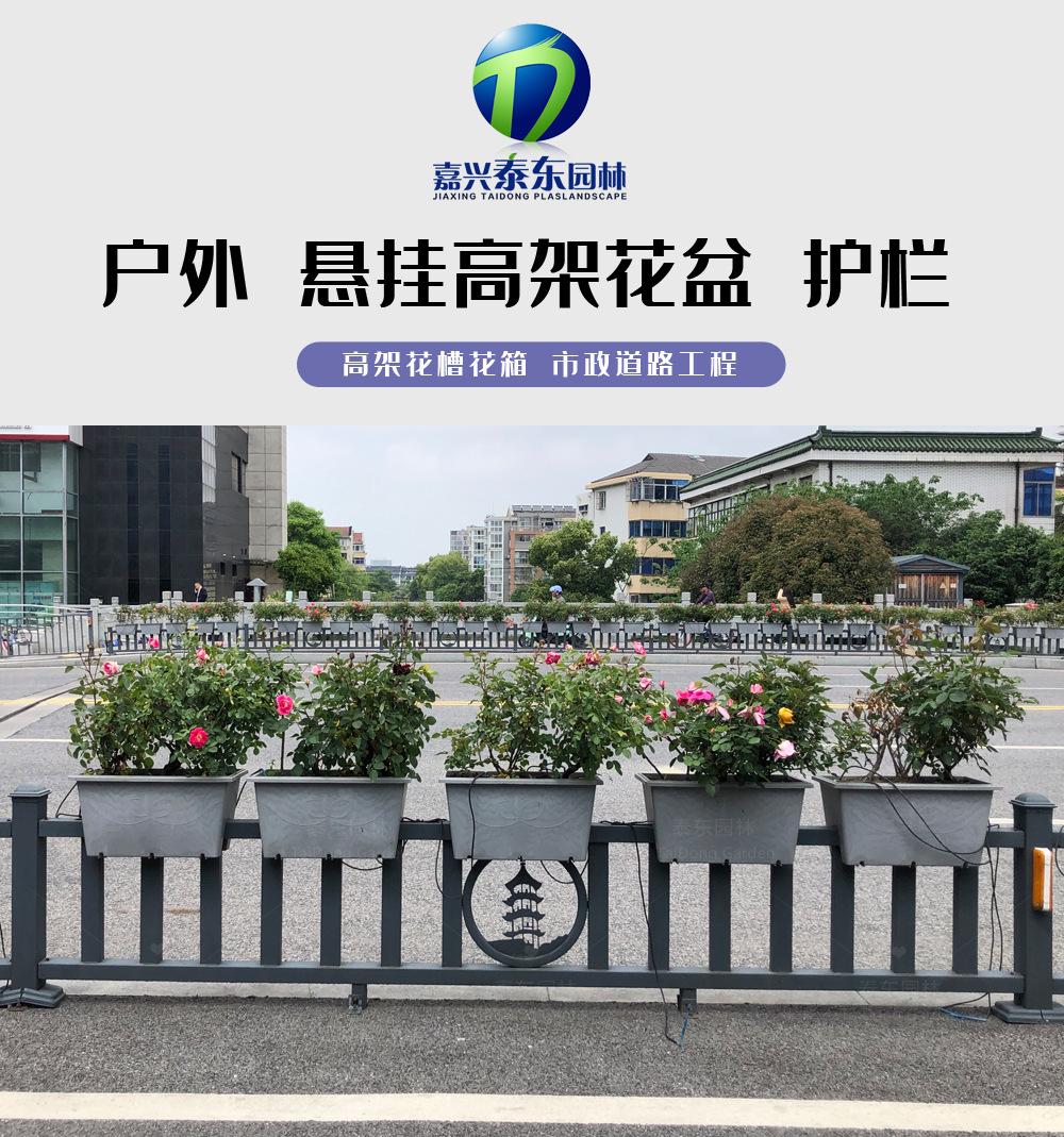 Viaduto elevado de plástico PP externo pendurado vaso de flores retangular máquina de estrada não isolada cinto paisagem verde calha de flores