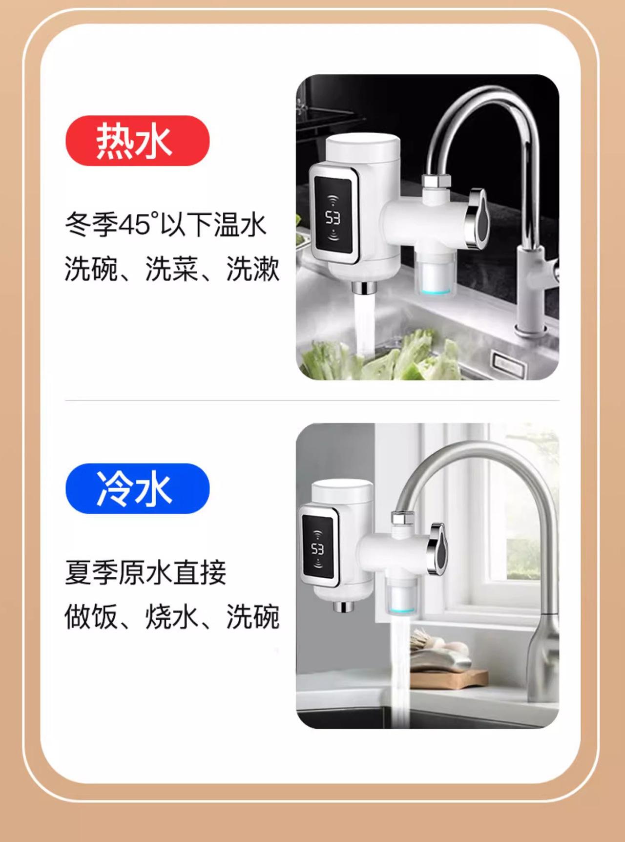 [3 seconds fast heating] horizontal cold and hot dual-purpose electric faucet round * explosion-proof and leak-proof