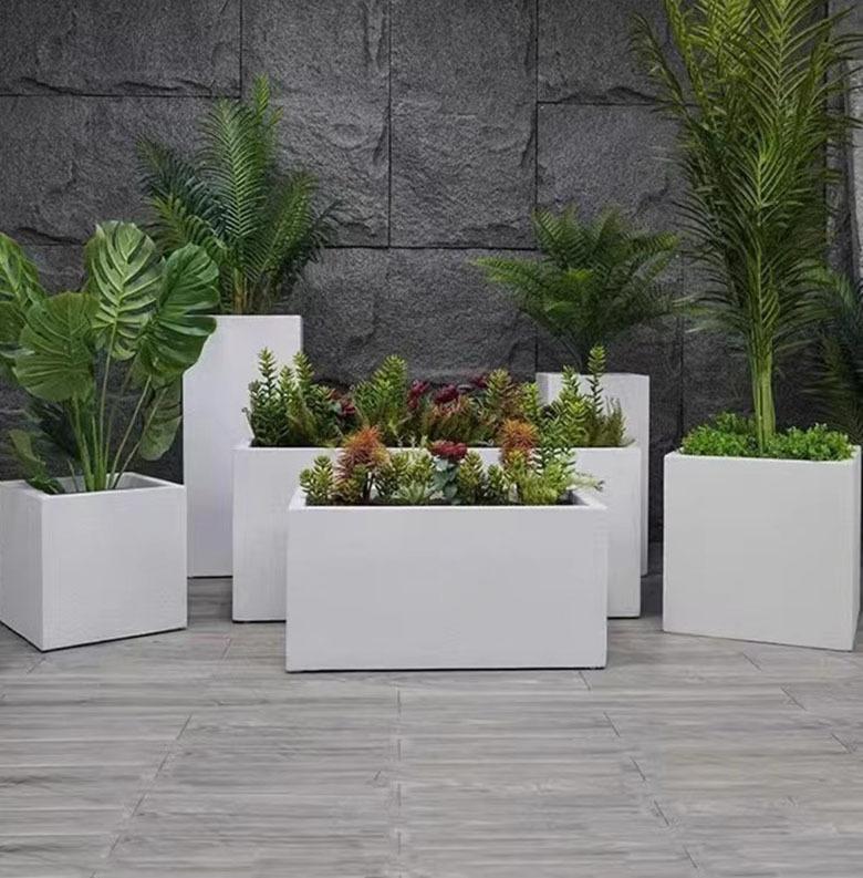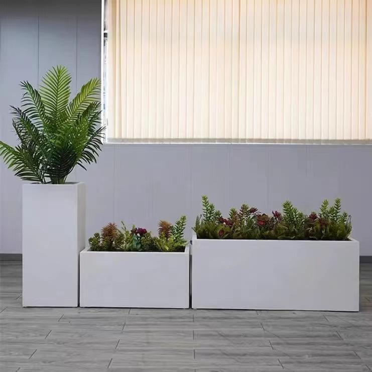 Transfronteiriça para caixa de flores de aço inoxidável de ferro ao ar livre dispositivo de flores retangular de metal para plantio de flores vaso de árvore estrada comercial