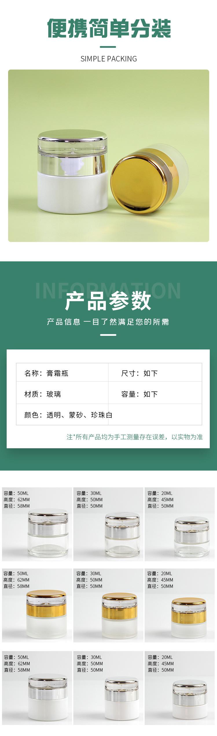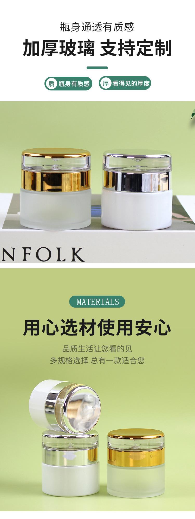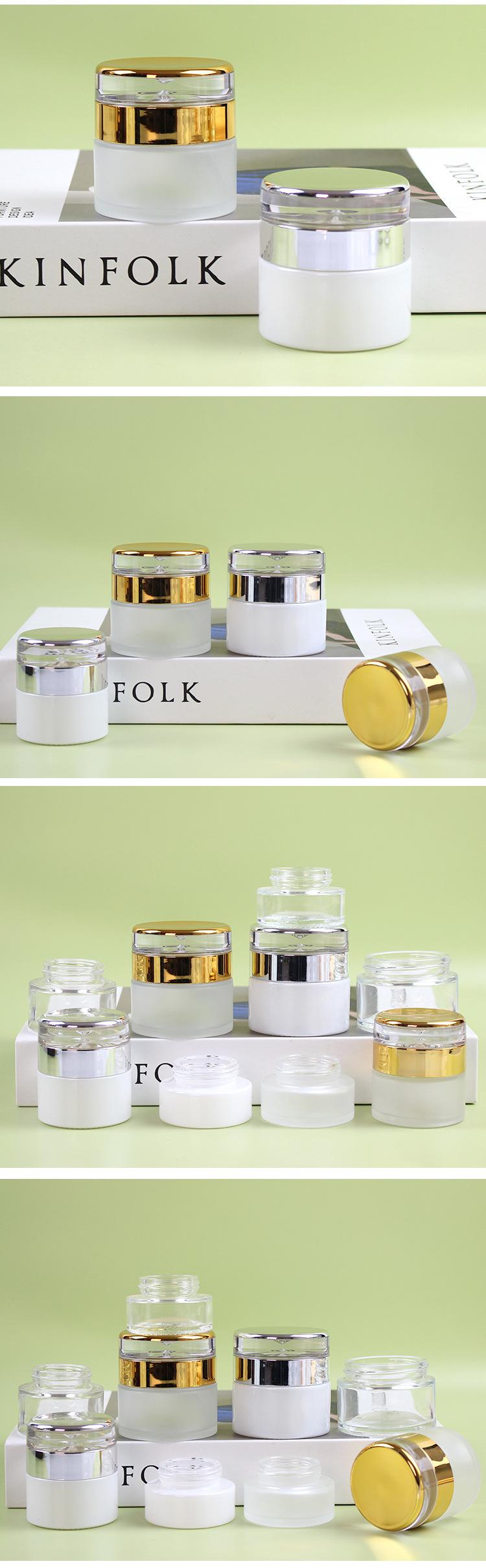 Frasco de creme acrílico Frasco de vidro fosco Frasco cosmético Frasco de amostra de creme facial de vários tamanhos Frasco portátil de viagem