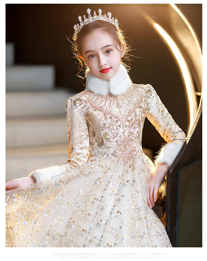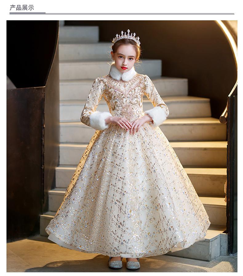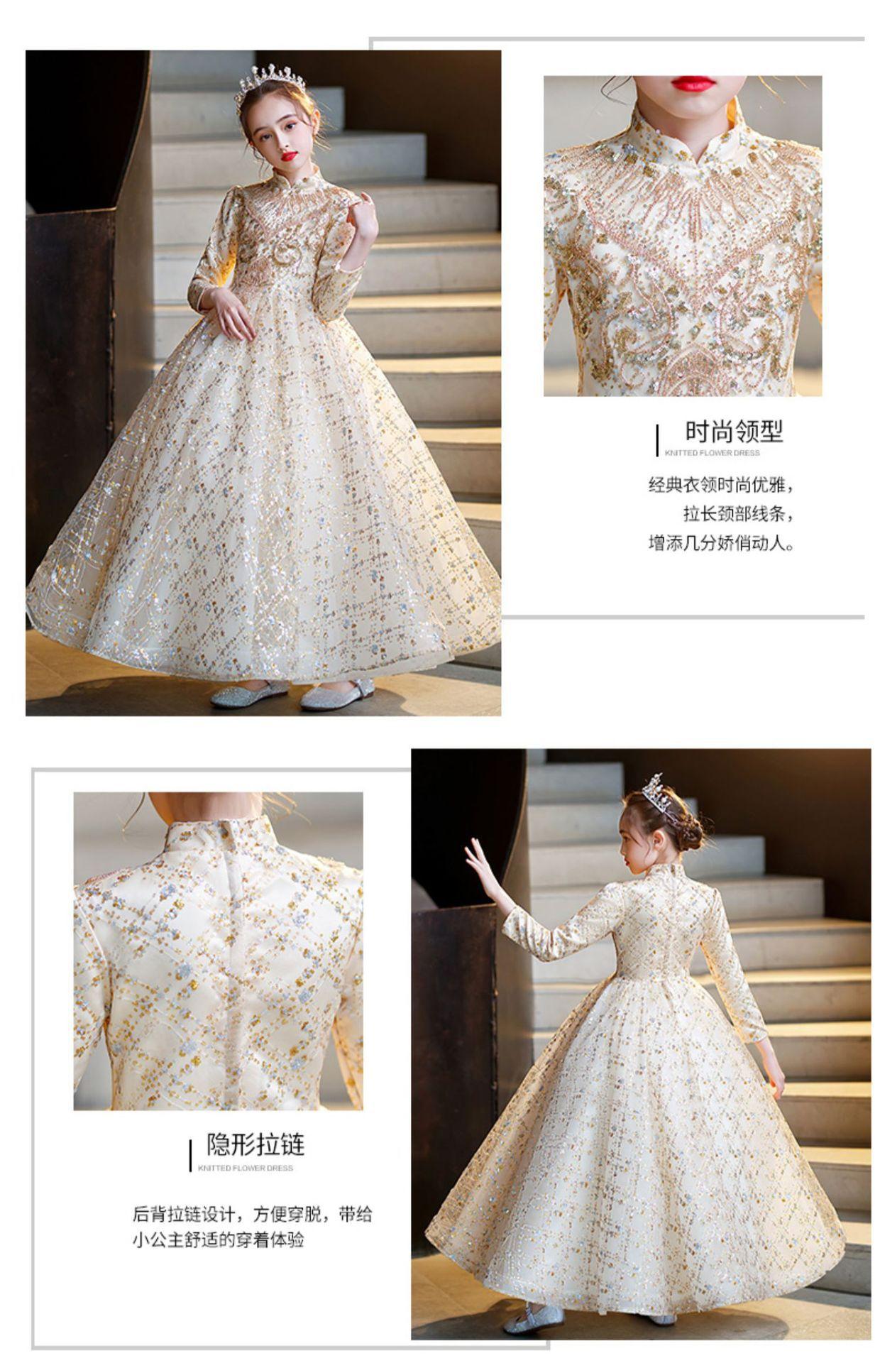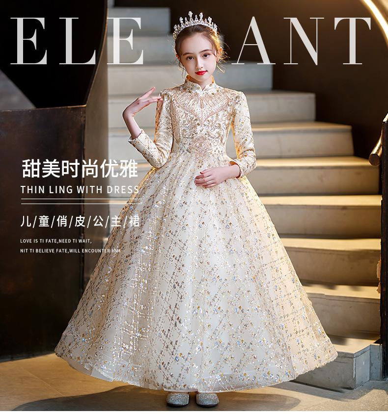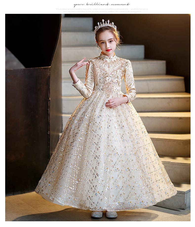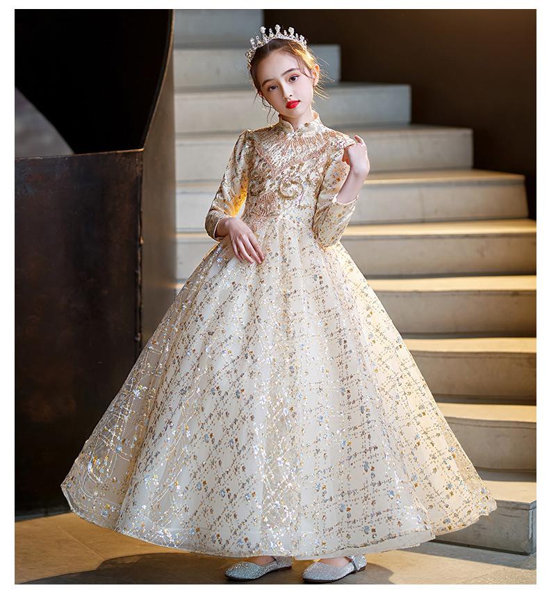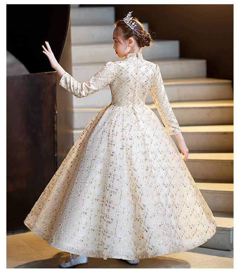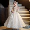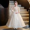 Vestido de Menina Vestido de Princesa de Aniversário 2025 Outono Novo Daminha Tule Fofo Infantil Apresentação de Piano
