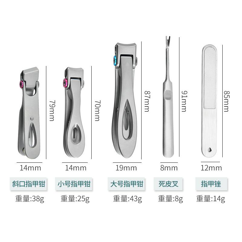 Atacado de aço inoxidável boca grande cortador de unhas único agregado familiar oblíquo cortador de unhas cabeça redonda arquivo pele morta empurrar ferramenta de manicure
