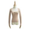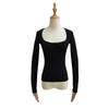 2024 primavera novo estilo americano de manga comprida camisa de assentamento botão top feminino fio slim fit emagrecimento grande gola quadrada curto T