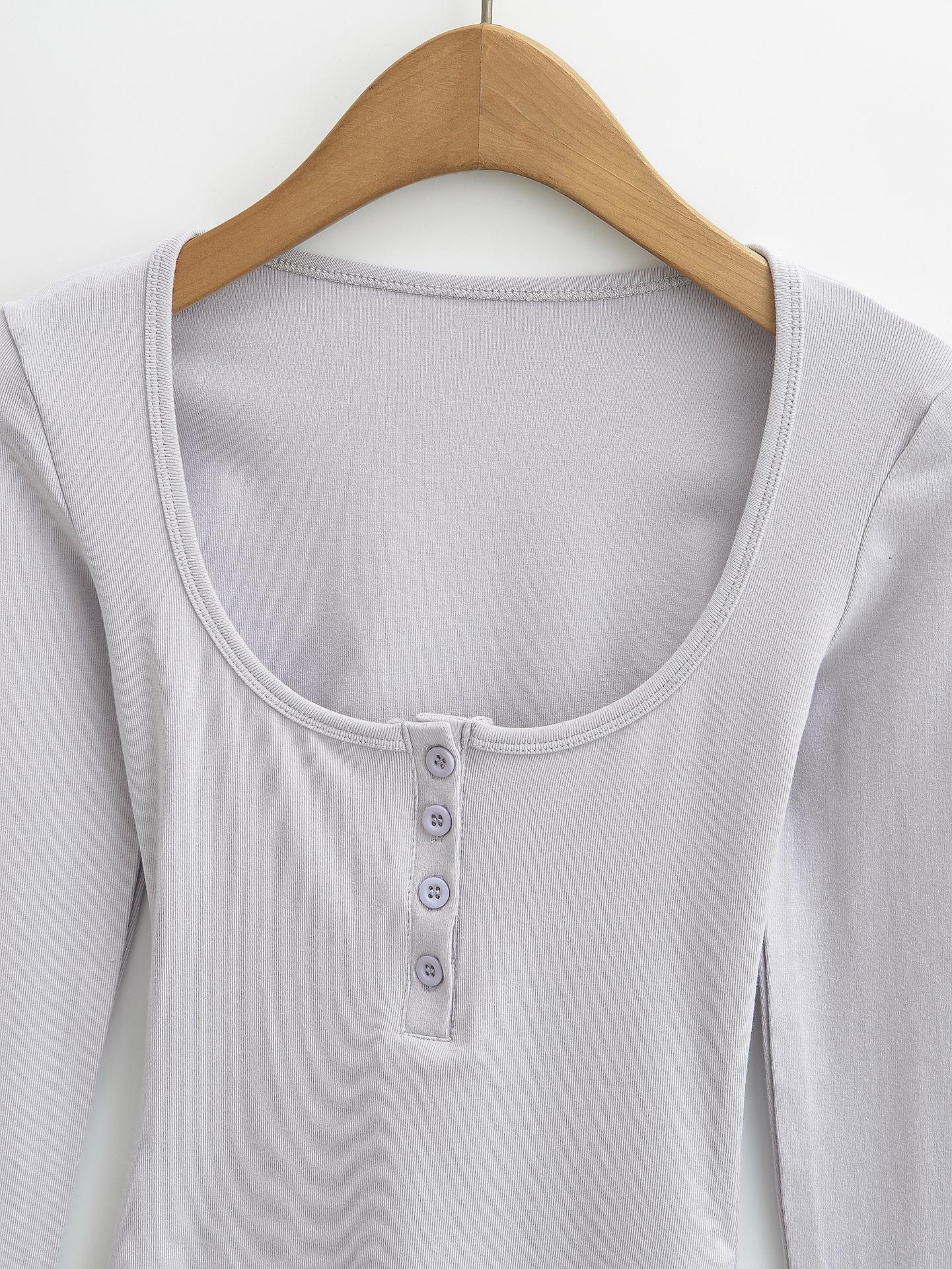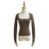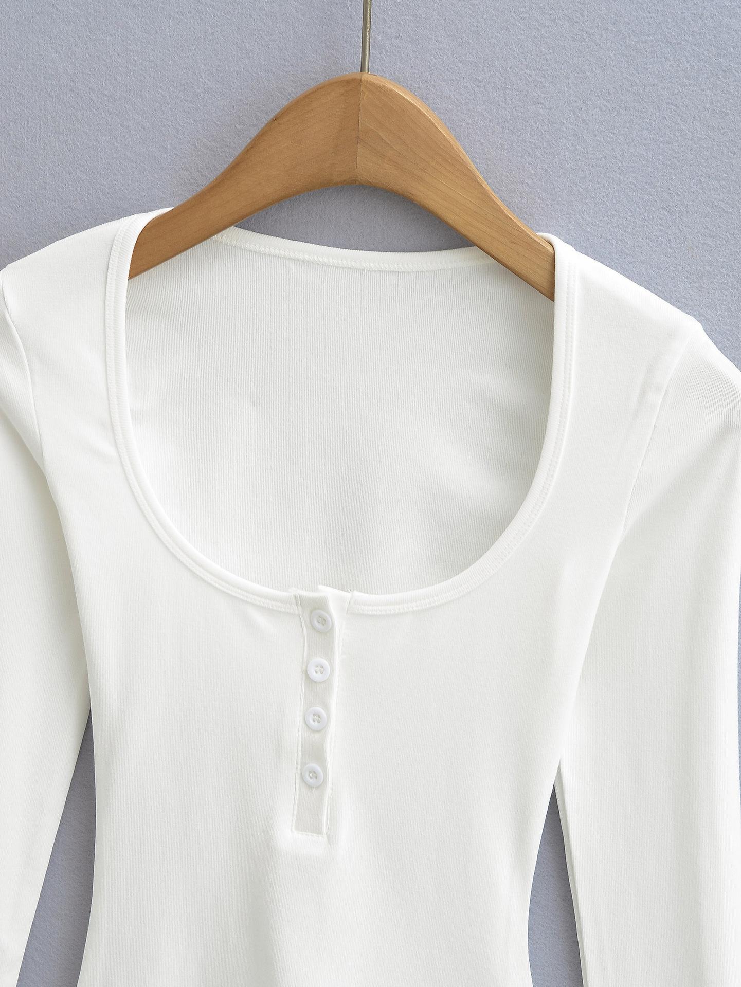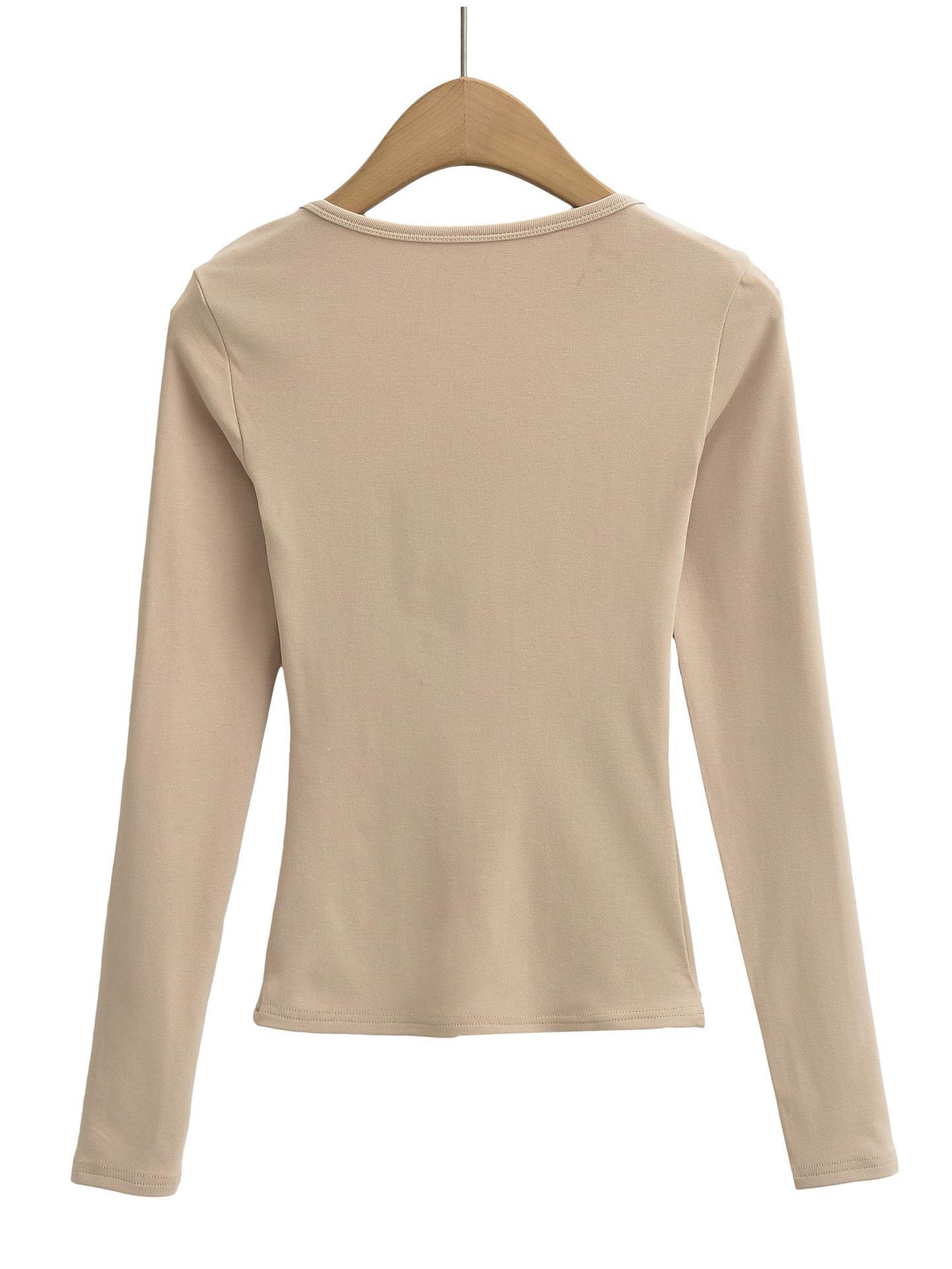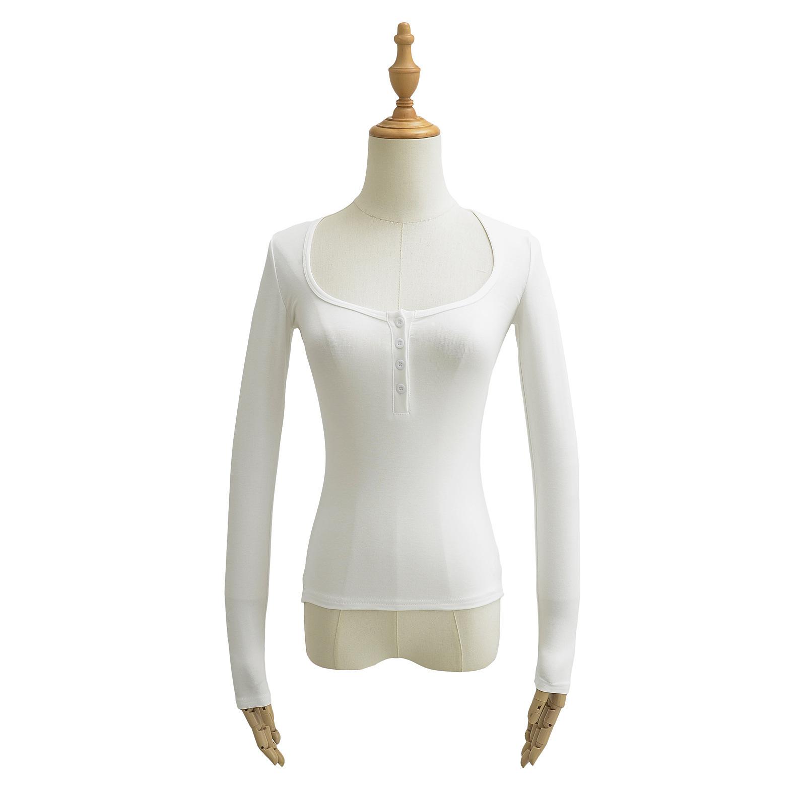 Compre 2024 primavera novo estilo americano de manga comprida camisa de assentamento botão top feminino fio slim fit emagrecimento grande gola quadrada curto T no atacado no Joom.pro