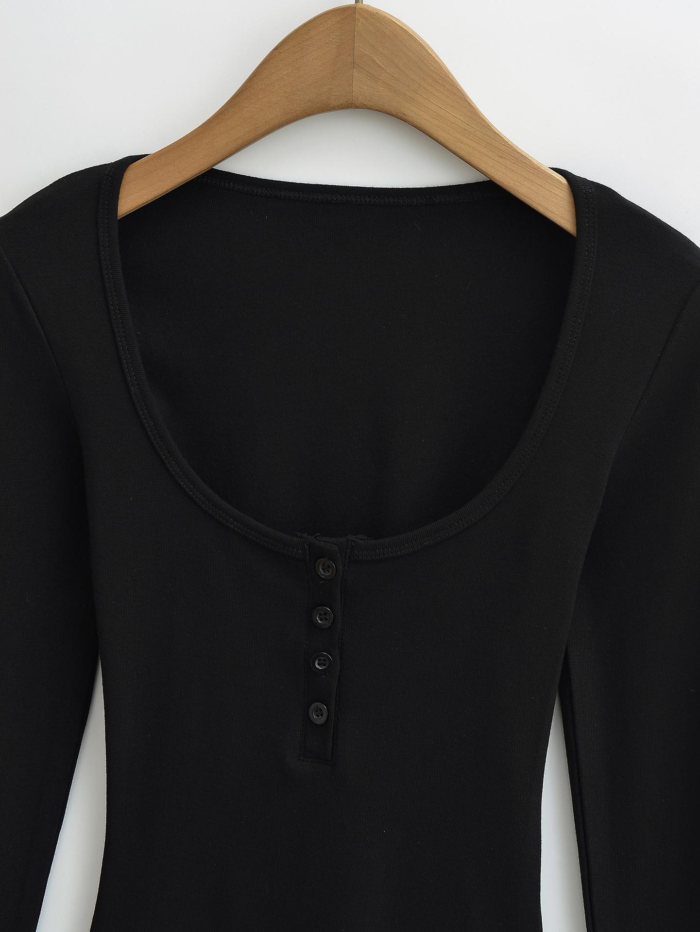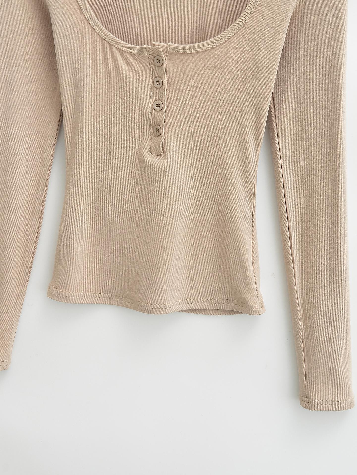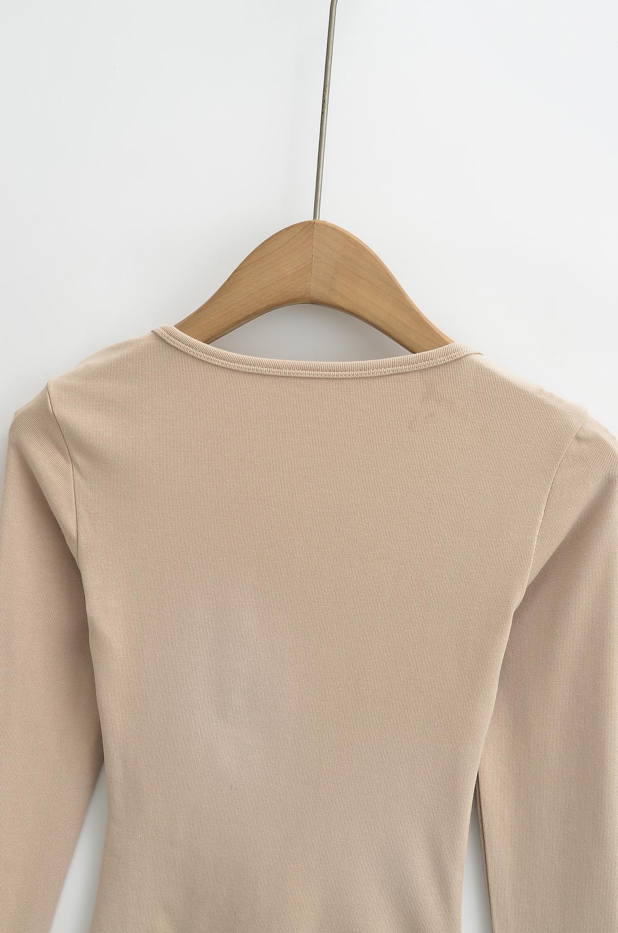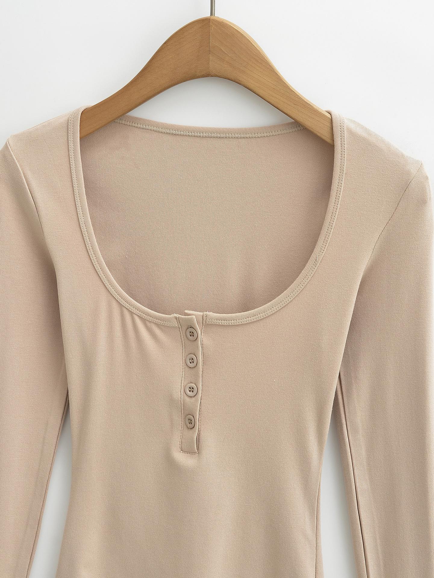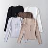 Compre 2024 primavera novo estilo americano de manga comprida camisa de assentamento botão top feminino fio slim fit emagrecimento grande gola quadrada curto T no atacado no Joom.pro