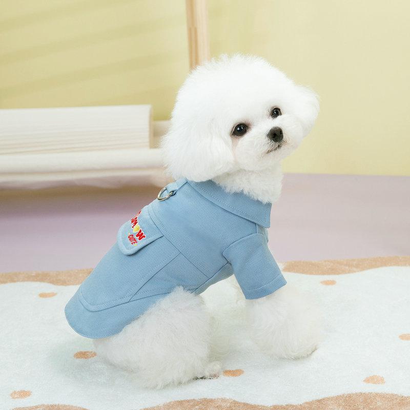 Fábrica de roupas para cães atacado roupas para animais de estimação roupas de gato ursinho de pelúcia bome cachorro pequeno bonito camisa jeans