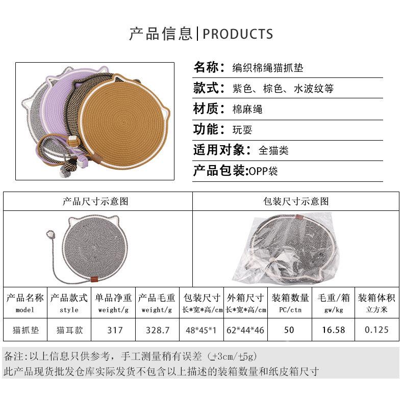 Almofada de Algodão Trançado Transfronteiriça para Arranhar Gatos com Bola Autoestimulante, Tapete para Dormir para Gatos, Lavável, Artefato para Afiar as Unhas, Almofada para Arranhar Gatos