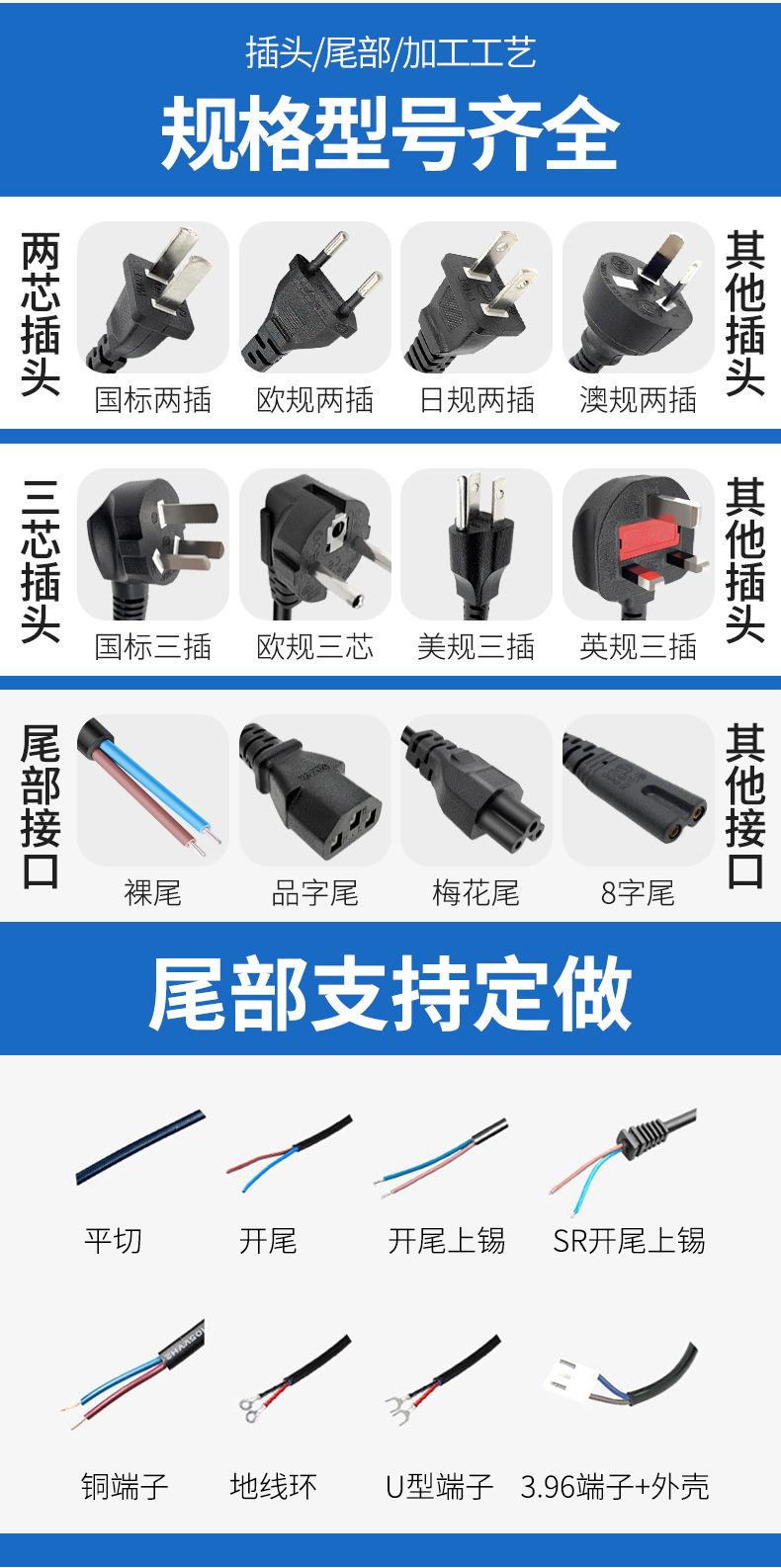 Cabo de alimentação de cobre puro de dois núcleos com plugue de dois plugues cabo de ferramenta elétrica linha de extensão de dois furos