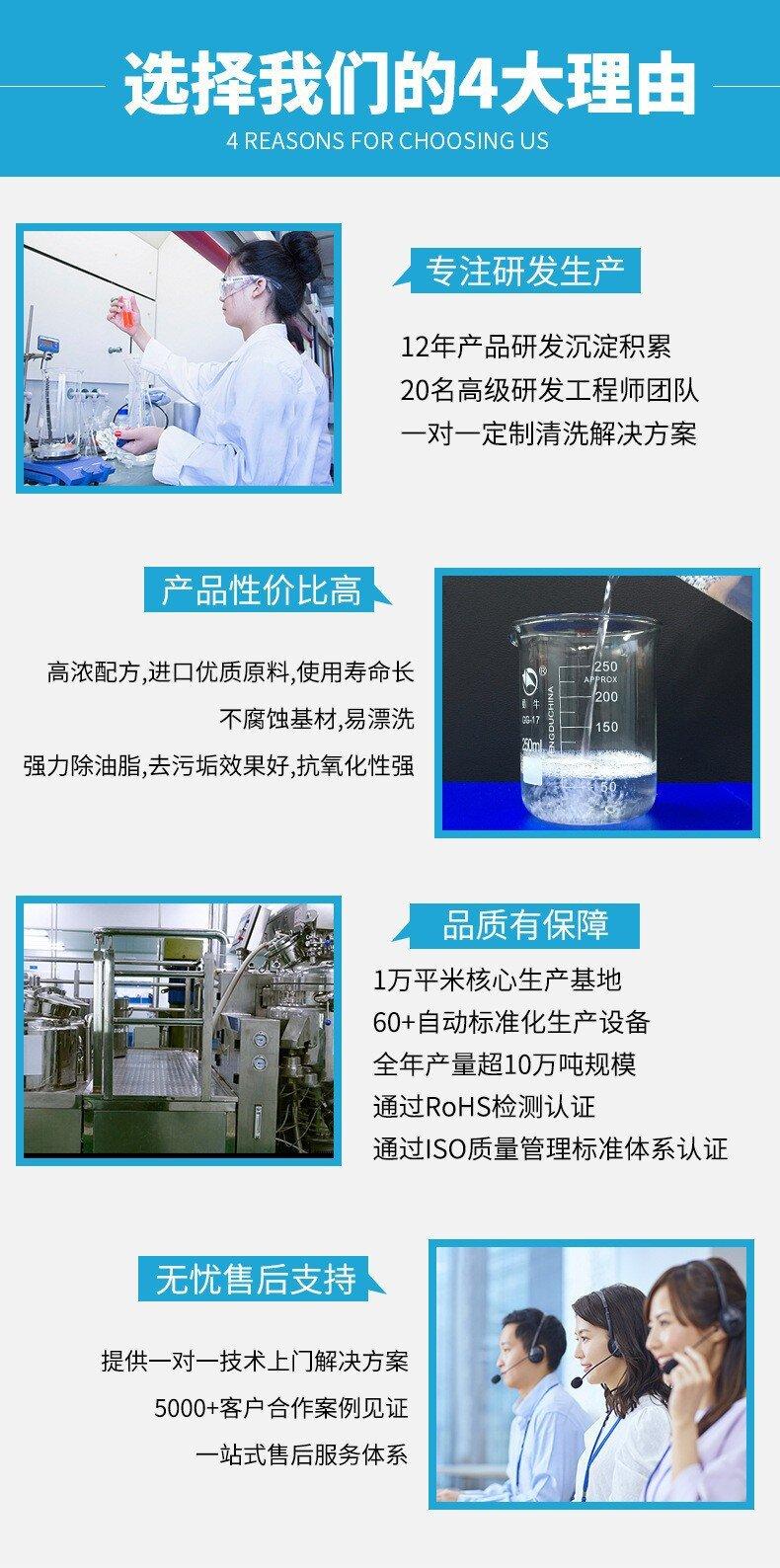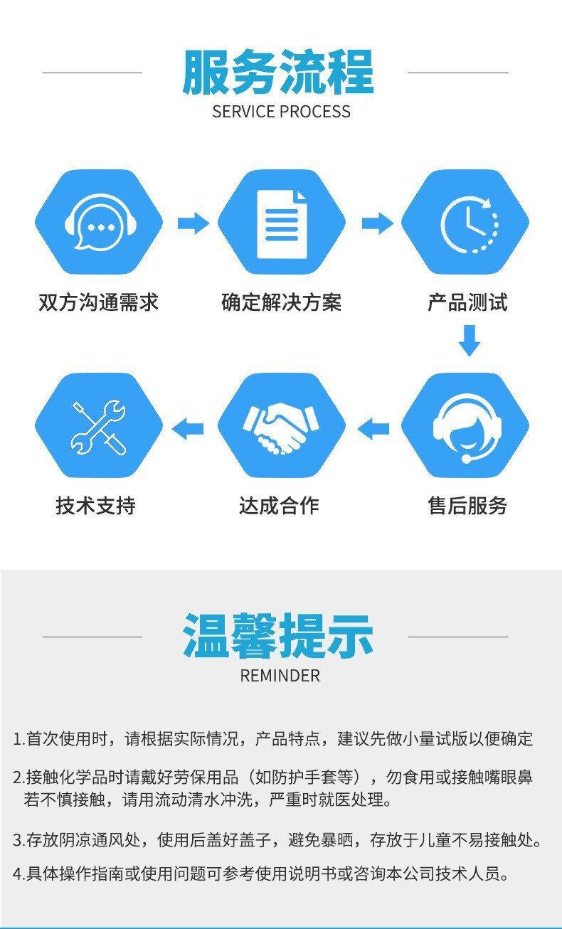 Este produto pode remover impurezas como fluido de corte, óleo de retificação, óleo de estampagem, óleo antiferrugem, pó metálico, poeira, etc., deixadas na superfície da peça de trabalho após o processamento a frio e a quente. Este produto não corrói as peças limpas nem os equipamentos de limpeza. Este produto pode ser diluído em água da torneira, o que é econômico e prático. Características do produto: Aparência: Pó branco Odor: Nenhum Valor de pH (solução aquosa a 1%): 9,1±0,5 Taxa de remoção de óleo: >97% Escopo de aplicação: ◆ Principalmente adequado para desengorduramento e limpeza de várias máquinas e equipamentos e peças mecânicas em campos de petróleo, desengorduramento e limpeza de peças de ferro fundido e aço carbono na fabricação de máquinas, fabricação de automóveis, construção e reparação naval, fabricação de rolamentos, metalurgia, aviação e aeroespacial, processamento de metais e outras indústrias. ◆ Peças mecânicas, vestes amarelas em máquinas-ferramentas, coifas, placas externas, manchas de óleo de cozinha, hospitais, pensões, hotéis, paredes de mármore, pisos, navios e indústrias de reparação de automóveis. ◆ Manchas de graxa em máquinas de processamento de alimentos, tubulações de óleo, filtros e indústrias de manufatura. Instruções: ◆ Concentração de uso: diluir com água na proporção de 1:20, ou seja, usar na concentração de 5%. ◆ Temperatura de operação: Geralmente, a temperatura de pulverização é de 60-80℃; ◆ Uso: limpeza por pulverização, limpeza por imersão, limpeza por escova e outros métodos. ◆ Verifique as peças limpas a qualquer momento e adicione este produto quando o efeito de limpeza diminuir. ◆ Substituição do líquido do banho: Se a limpeza das peças após a limpeza não atender aos requisitos após o uso do líquido do banho por alguns dias, o líquido do banho deverá ser completamente substituído. Precauções: ◆ Peças de metal de ferro fundido e aço carbono limpas com este produto têm apenas um efeito antiferrugem de curto prazo. Se for necessário um antiferrugem de médio e longo prazo, um processo antiferrugem deve ser adicionado. As peças limpas devem ser mantidas longe da chuva e da água. ◆ Este produto é alcalino, use luvas de borracha ao usá-lo por muito tempo. ◆ Este produto congela em baixas temperaturas, mas seu desempenho não será afetado após o descongelamento. ◆ Se este produto acidentalmente espirrar nos olhos, enxágue com água limpa. Embalagem e armazenamento: ◆ Embalagem de 25 kg. ◆ Armazene em local fresco. |