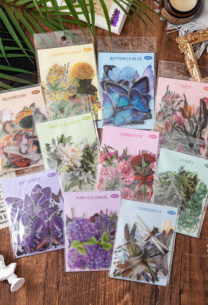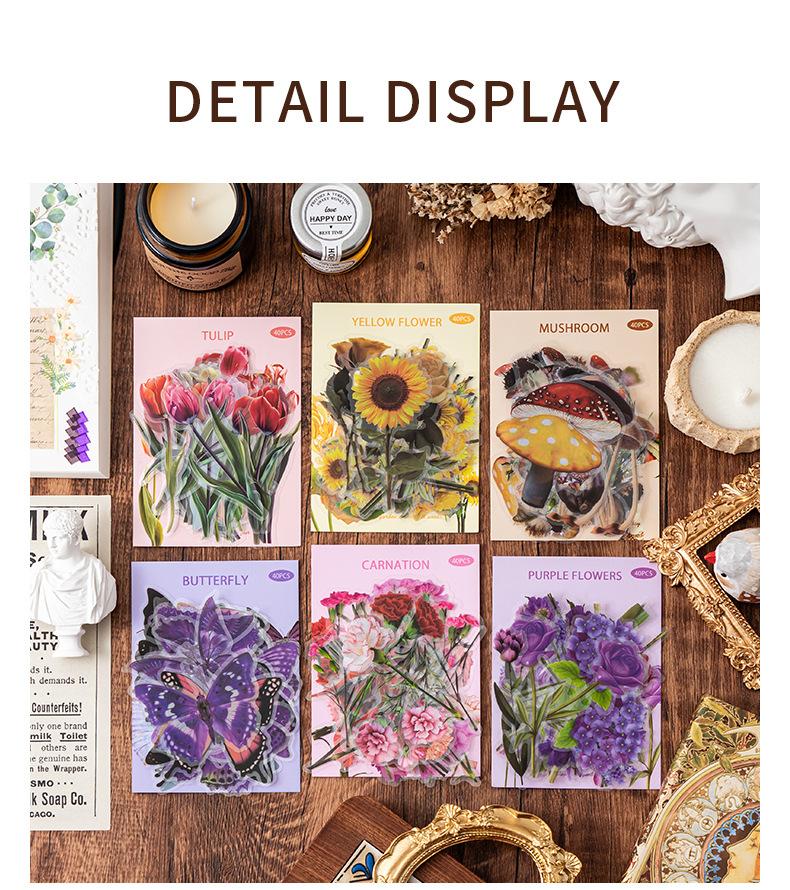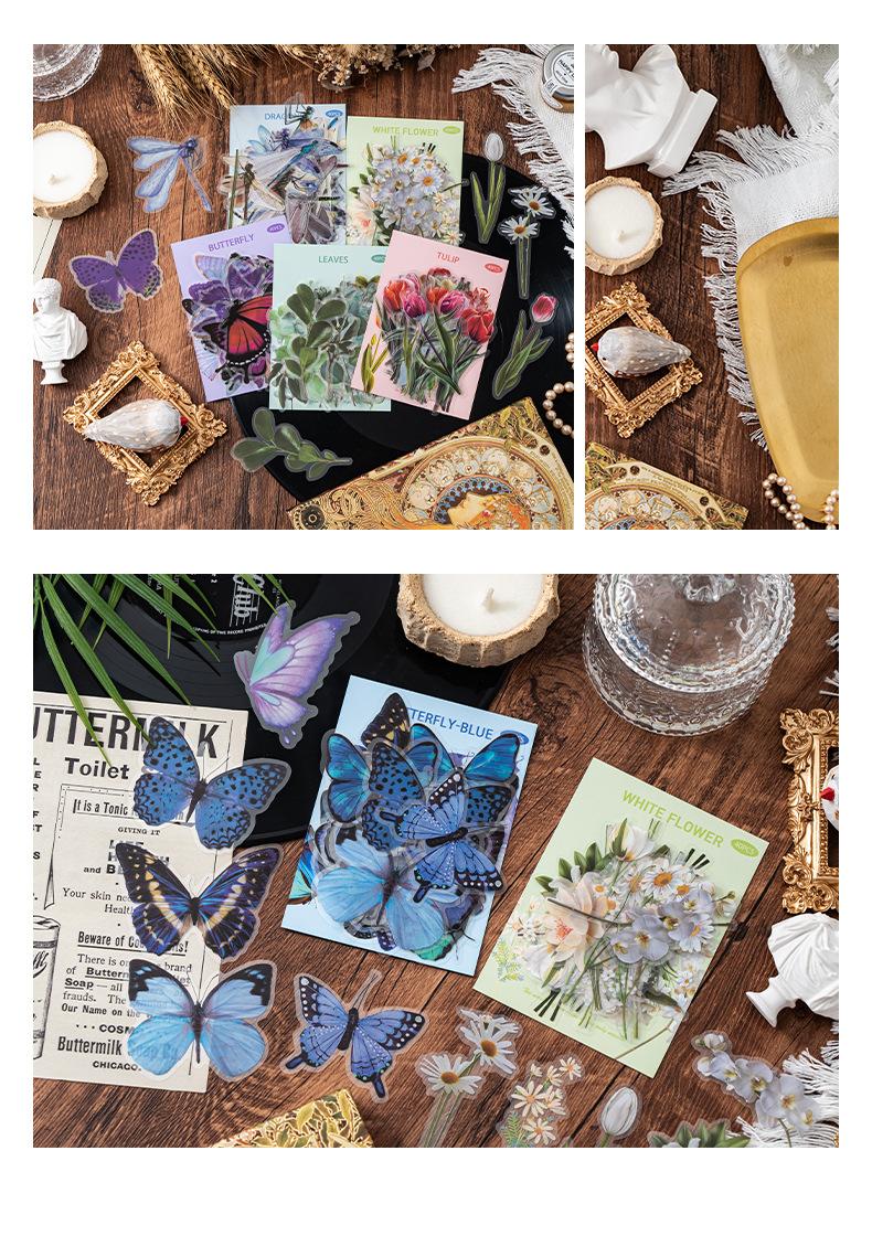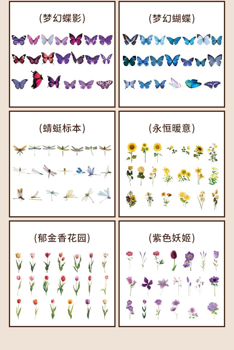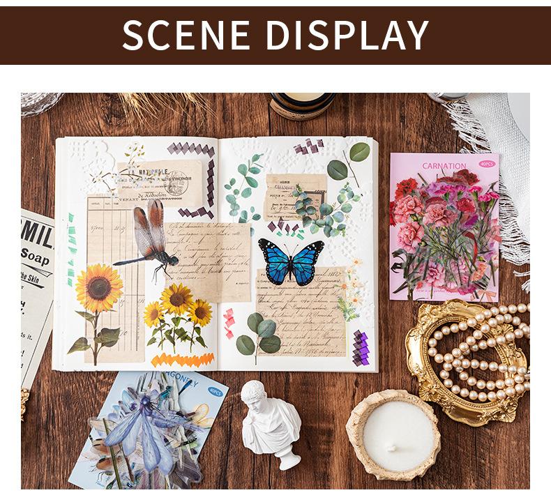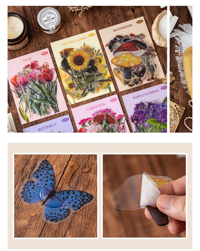 Adesivos Ilustrativos de Animais Transfronteiriços Adesivos Decorativos de Flores e Plantas para Caderno Material Impermeável para Faça Você Mesmo Adesivos para Caderno