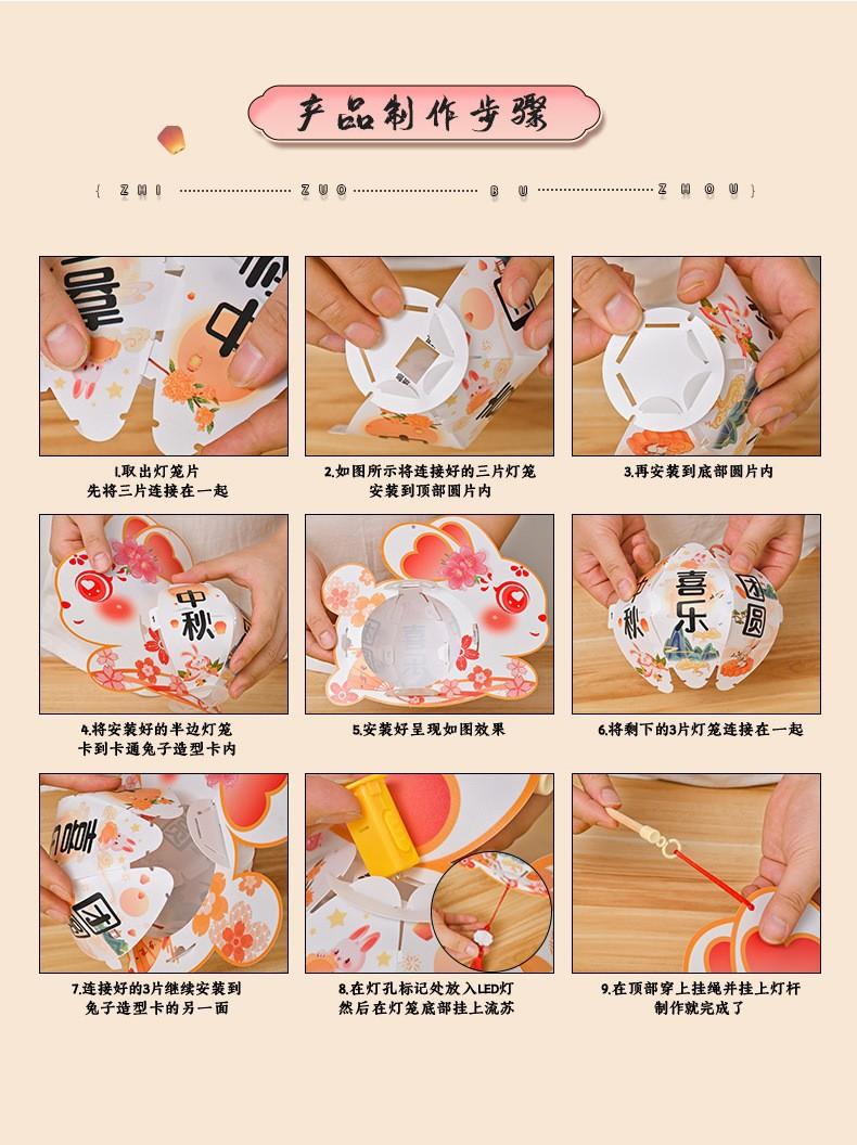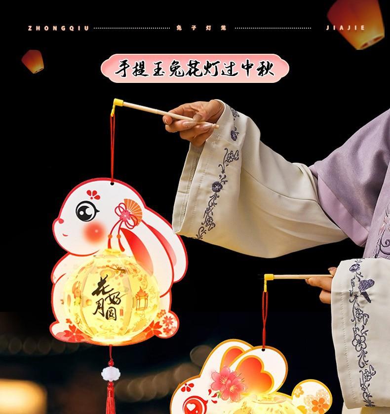 Compre Festival do Meio Outono lanterna de coelho luminosa à prova d'água lanterna portátil de estilo chinês artesanal artesanal bolsa de material diy 2024 novo no atacado no Joom.pro