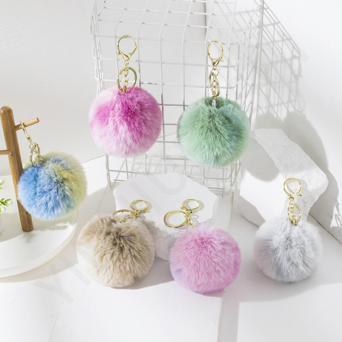 Nova bola de pêlo tingida 7,3 cm bola de pêlo artificial pendurado pingente bolsa feminina acessórios chaveiro em estoque