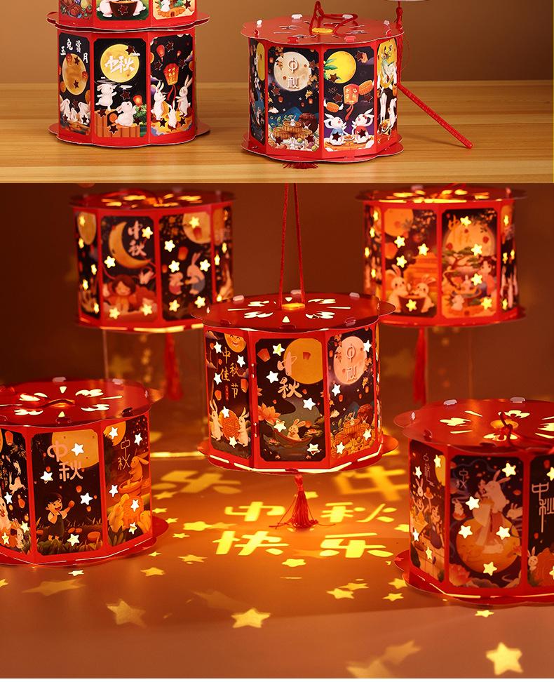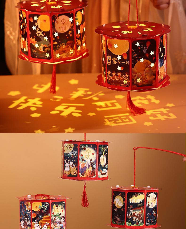 Lanterna do Festival do Meio Outono Decoração Artesanal DIY Material de Projeção Bolsa Lanterna Luminosa Portátil Infantil Lanterna Pequena
