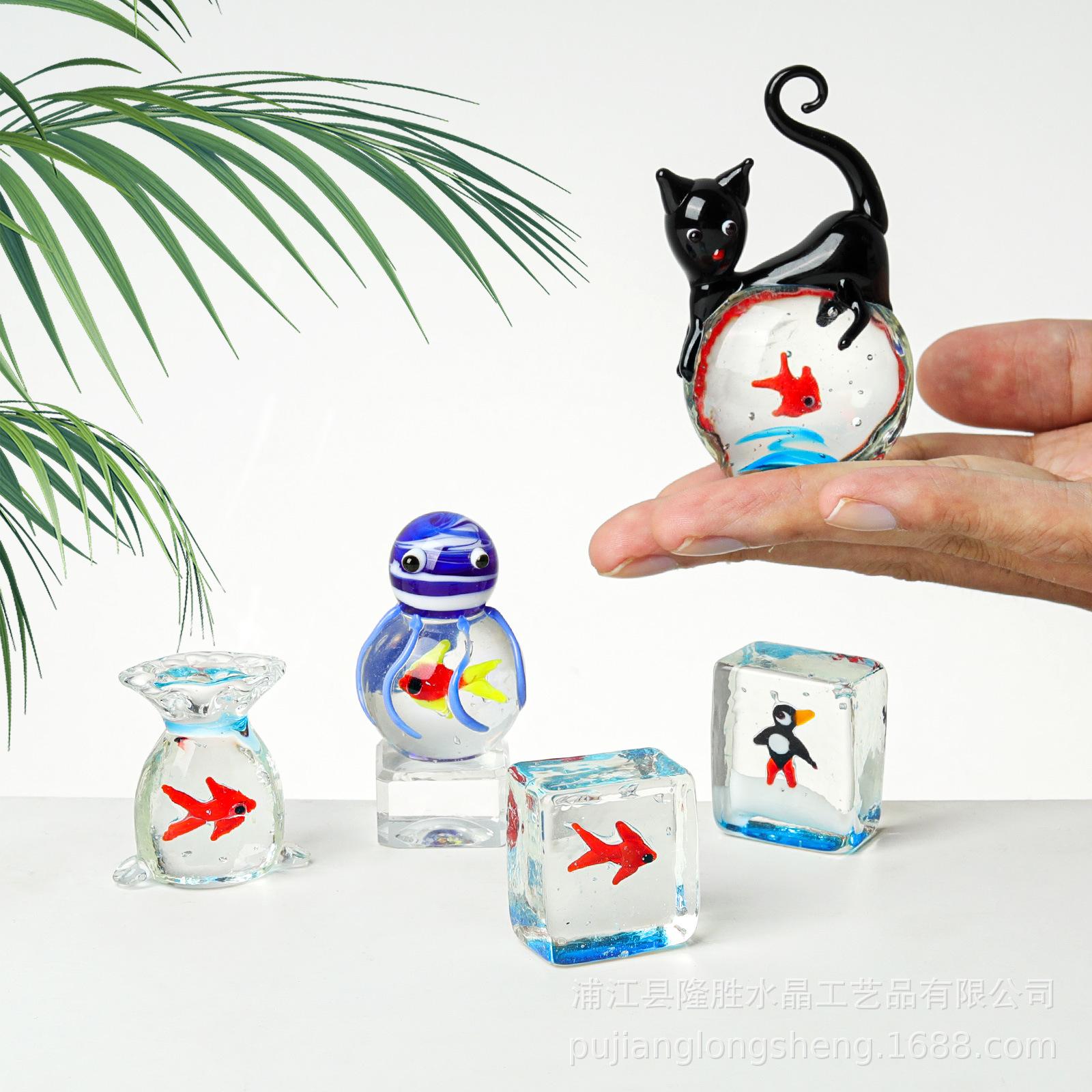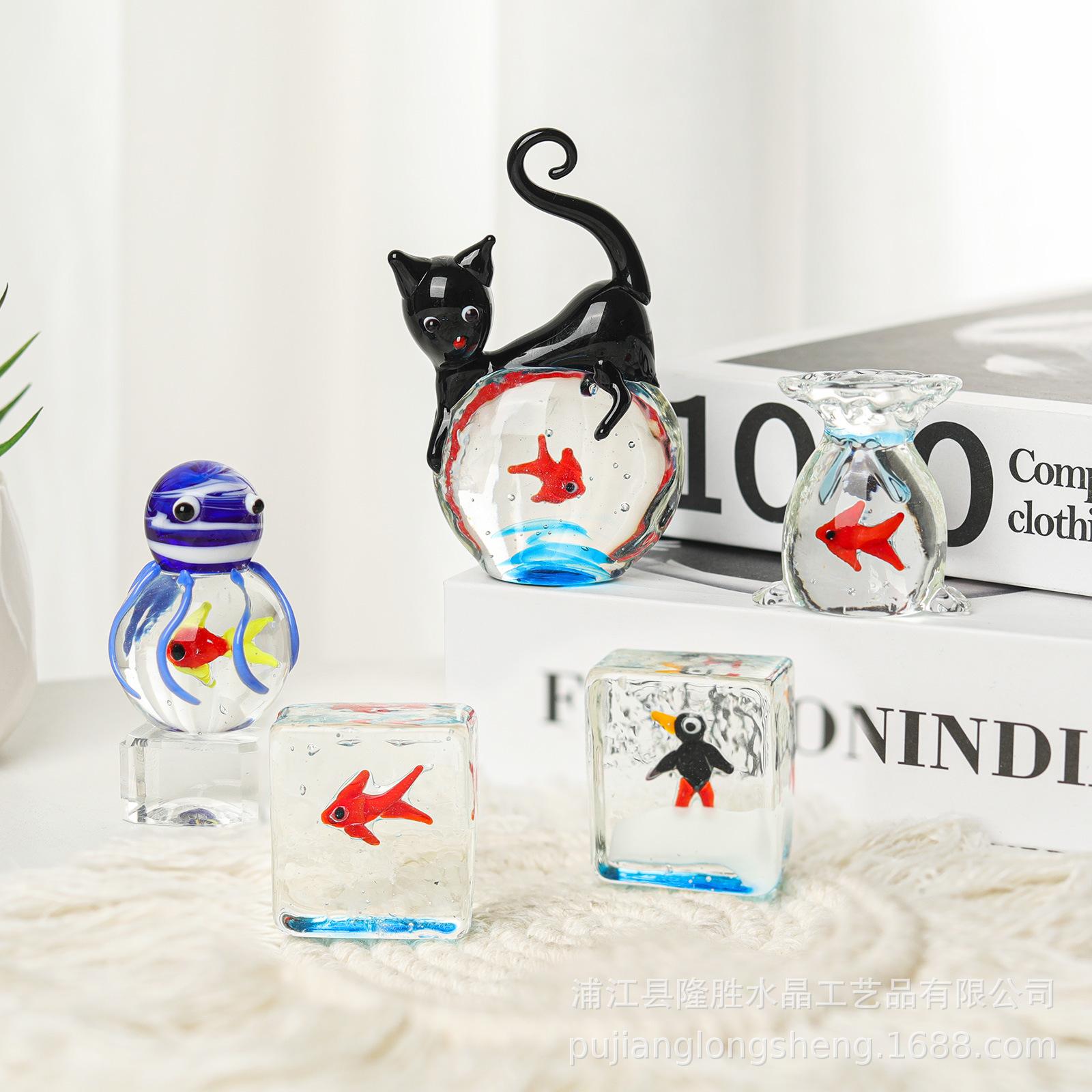 Simples Moderno Acrílico Sala de Jantar Sala de Estar Decoração de Desktop Mini Quadrado Criativo Vidro Bolso Peixe Gato Preto Urso