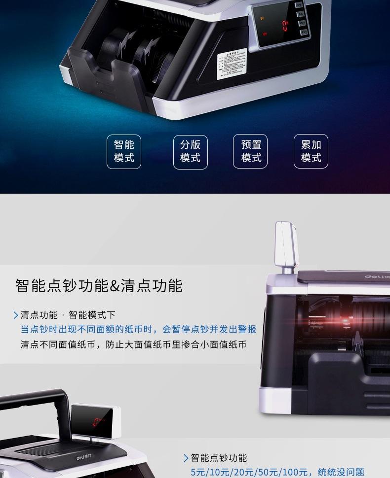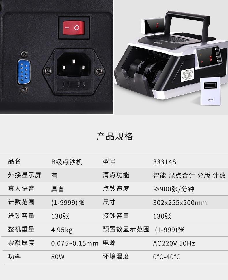 Deli 33314S Máquina de Contagem de Dinheiro Detector de Notas Inteligente CaShier Portátil Comercial Escritório Totalmente Automático Anti-falsificação Ponto B Nível