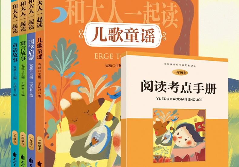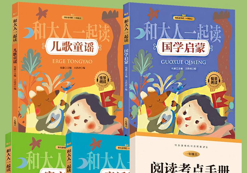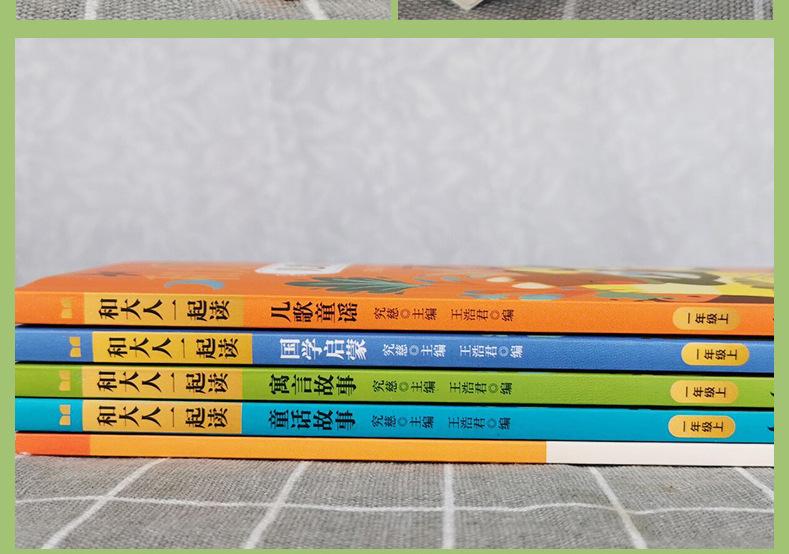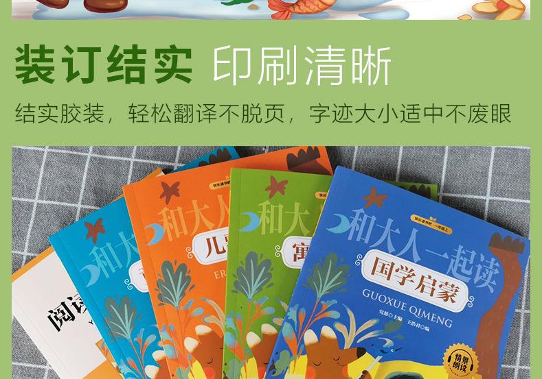 Entregue o manual e leia um conjunto completo de 4 imagens coloridas e versões fonéticas dos livros extracurriculares da primeira série com adultos.