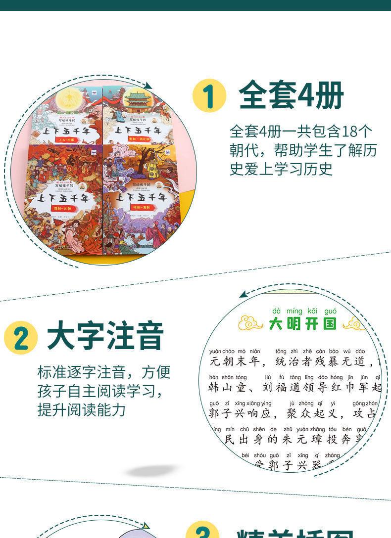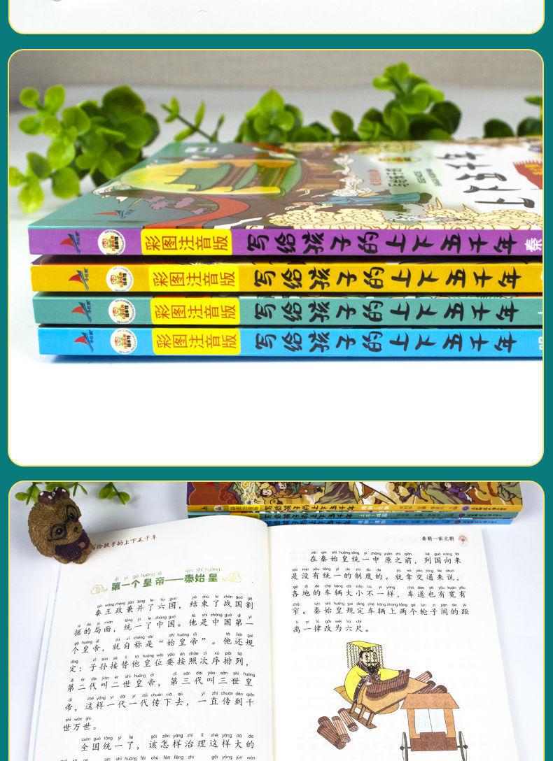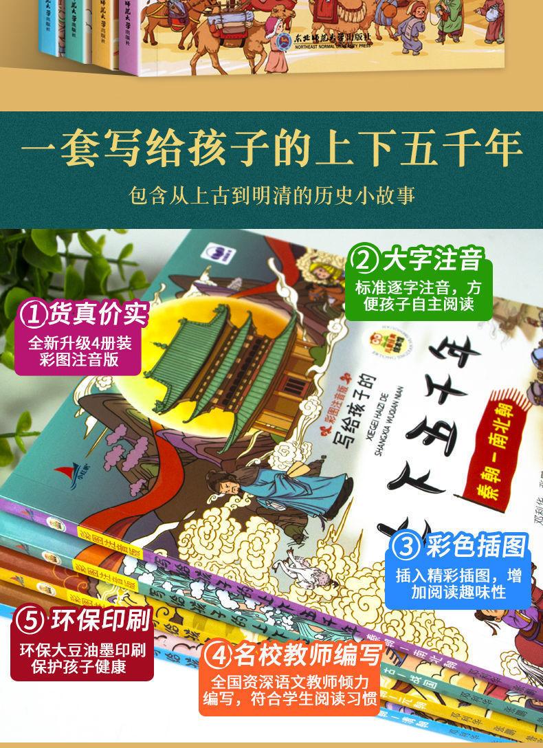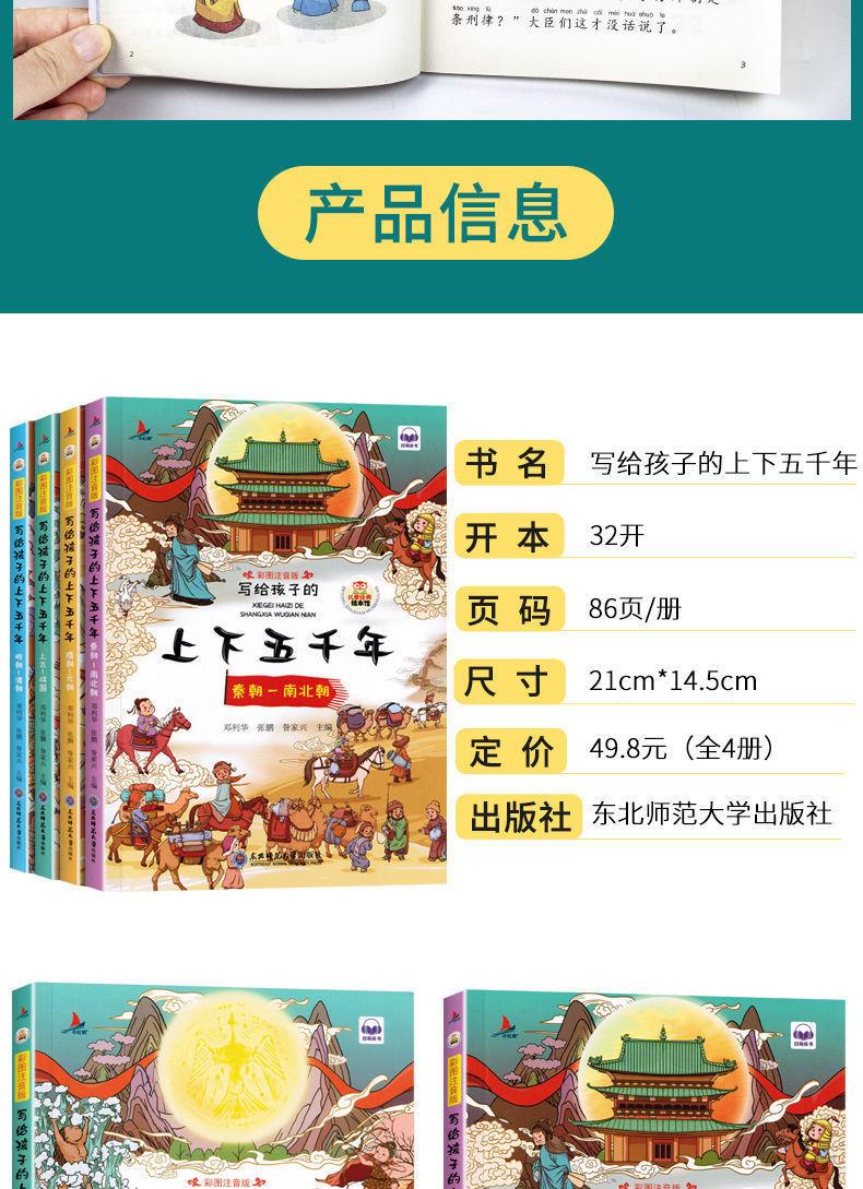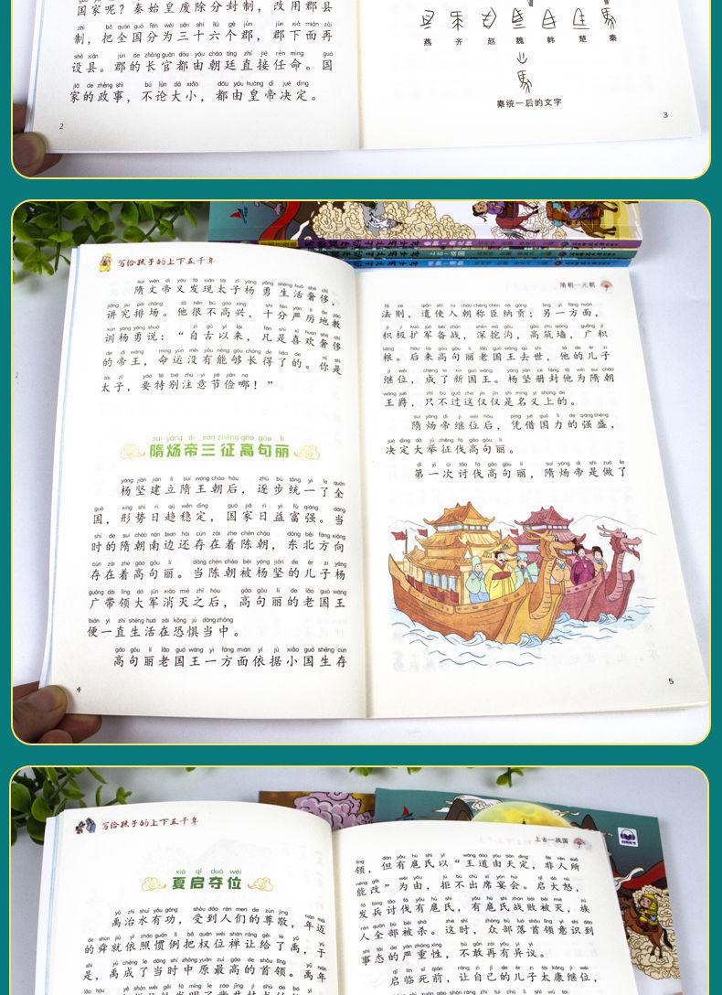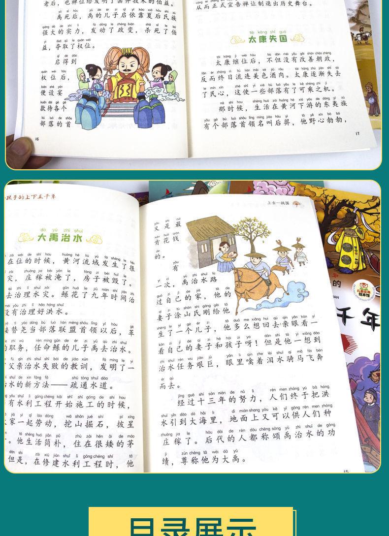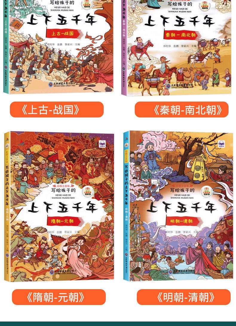 A versão fonética das imagens coloridas de 5.000 anos para cima e para baixo escritas para crianças são 4 volumes de livros extracurriculares sobre a história chinesa em 5.000 anos.