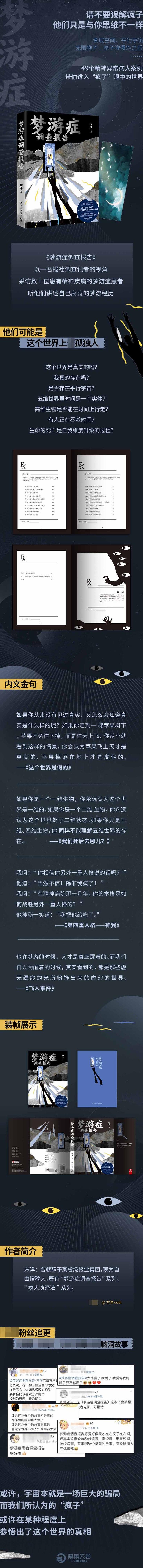 Da perspectiva de um repórter investigativo de jornal, "Sleepwalking Investigation Report" entrevista dezenas de sonâmbulos com doenças mentais e ouve suas experiências bizarras de sonambulismo. As conversas abrangem filosofia, psicologia, biologia, relatividade, física quântica... As declarações desses pacientes abrangem uma ampla gama de disciplinas, e muitas de suas visões estão além do escopo da cognição das pessoas comuns. Este mundo é real? Eu realmente existo? Existem universos paralelos? O tempo é uma entidade no mundo de cinco dimensões? Criaturas de alta dimensão podem andar no tempo? Alguém está devorando o tempo? A morte da vida é um processo de atualização autodimensional? ………… Talvez o universo seja uma grande farsa. E o "louco" em que pensamos pode ter percebido a verdade deste mundo até certo ponto.