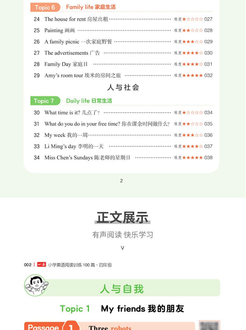 | Nome do Produto: | 2025 Treinamento de leitura em inglês para o ensino fundamental 100 artigos para a 4ª série | formatar: | 16 aberto |