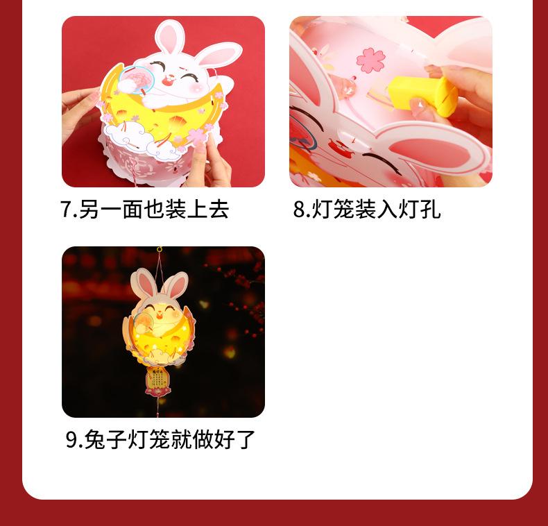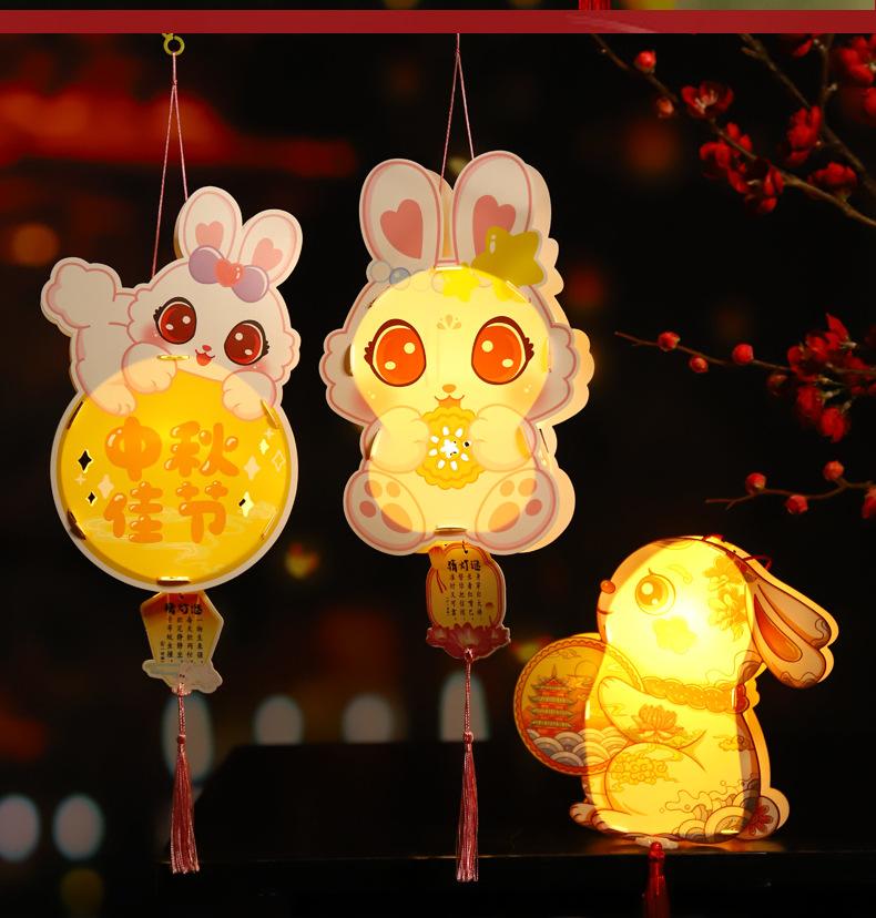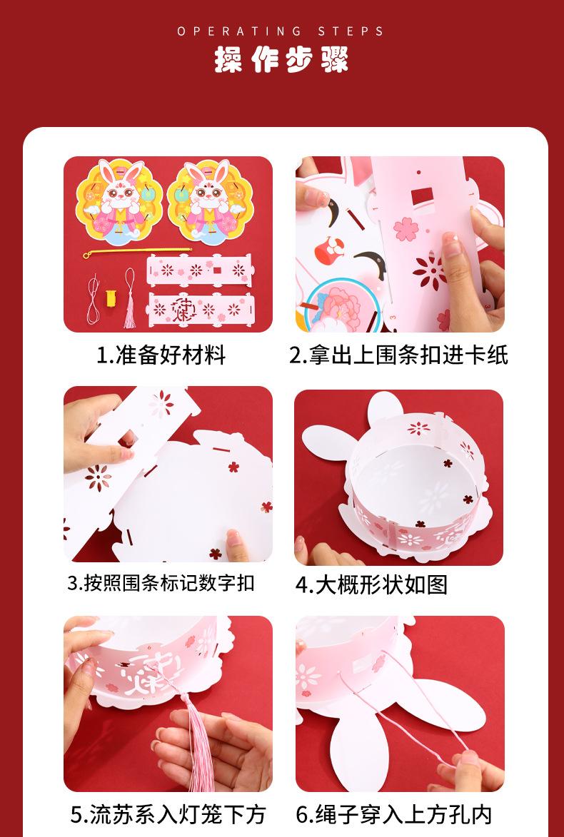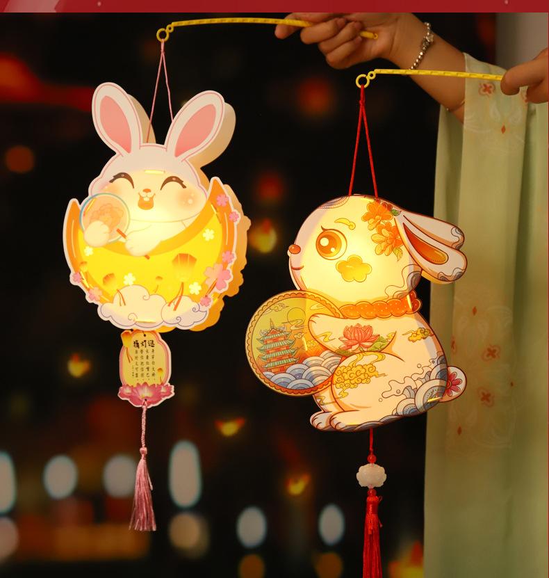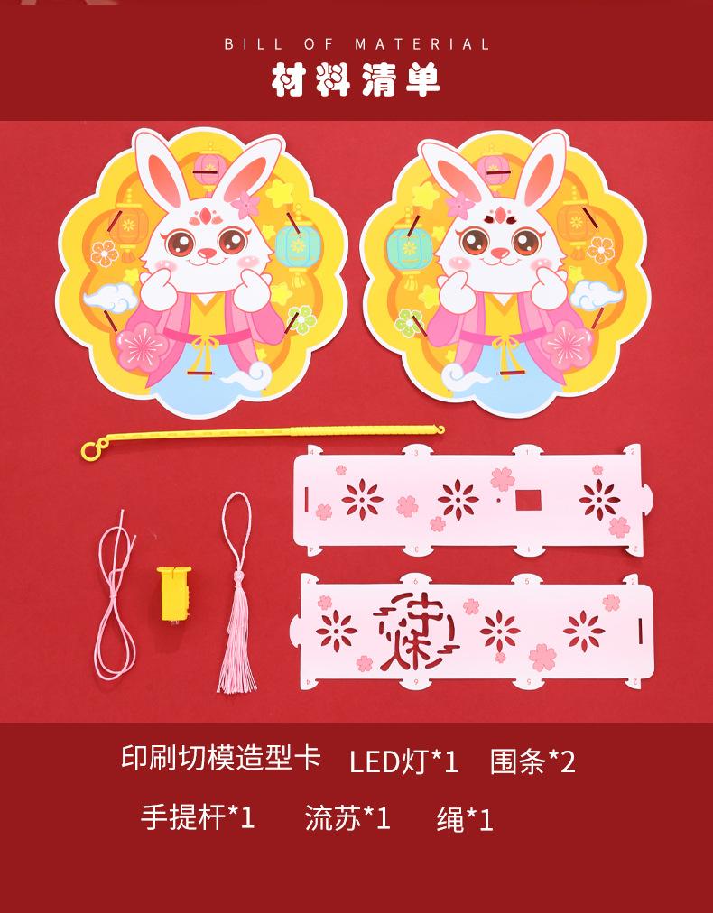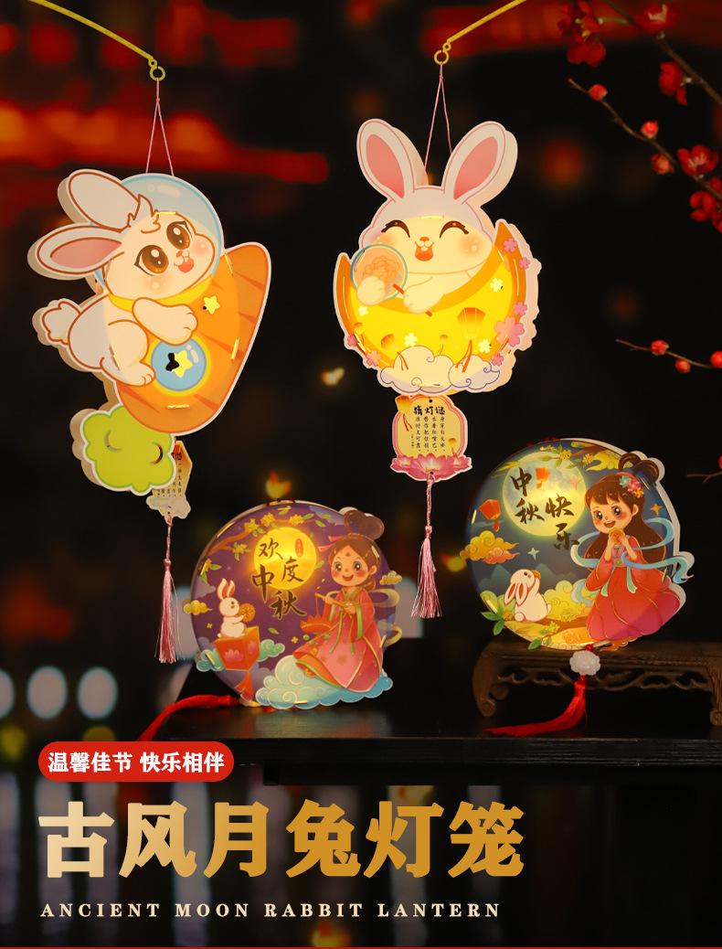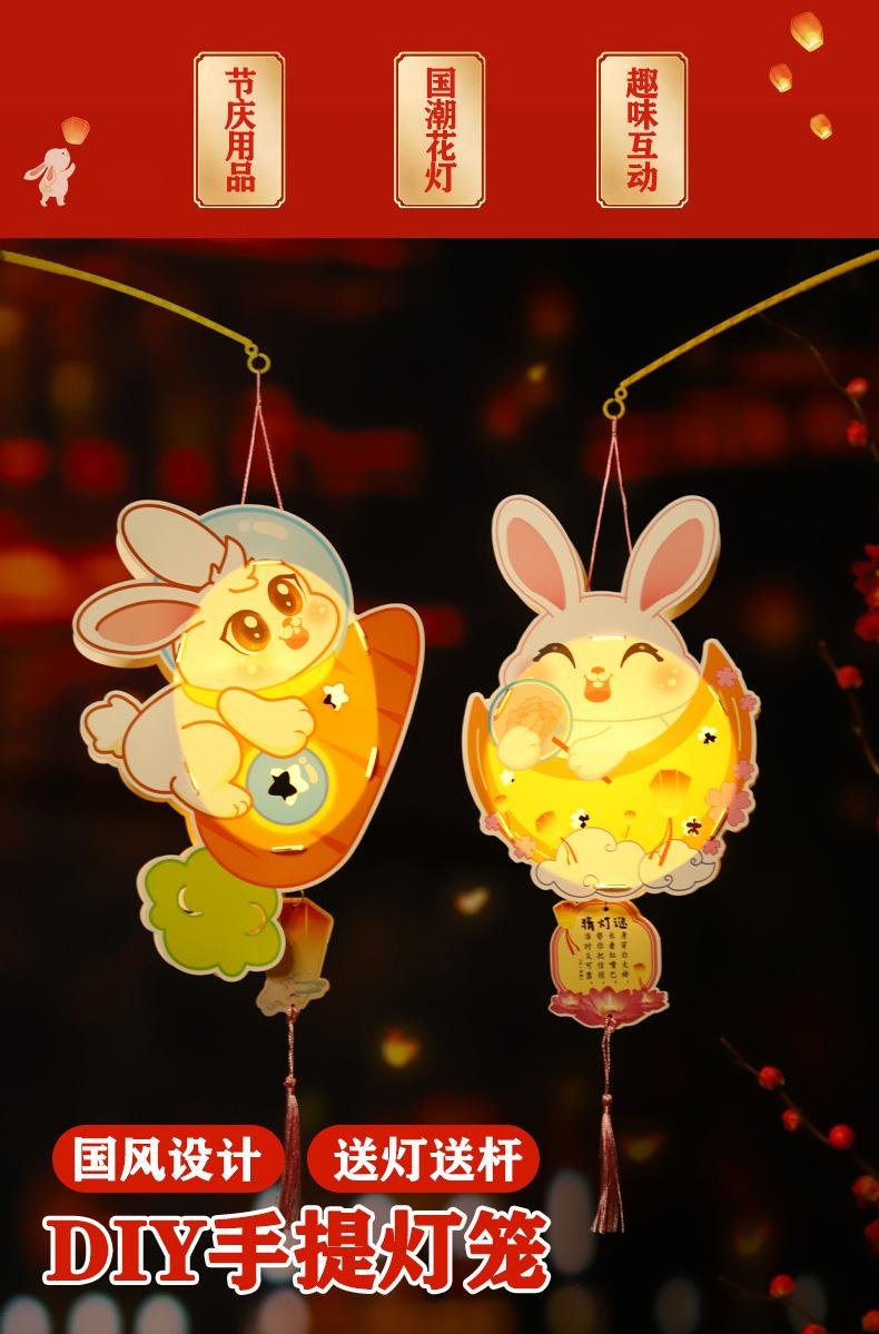 Lanterna do Festival do Meio-Outono Lanterna de Coelho Lanterna de Coelho DIY Feita à Mão Pacote de Materiais de Produção Infantil Estilo Antigo de Jade Bolsa Lanterna de Coelho Atacado