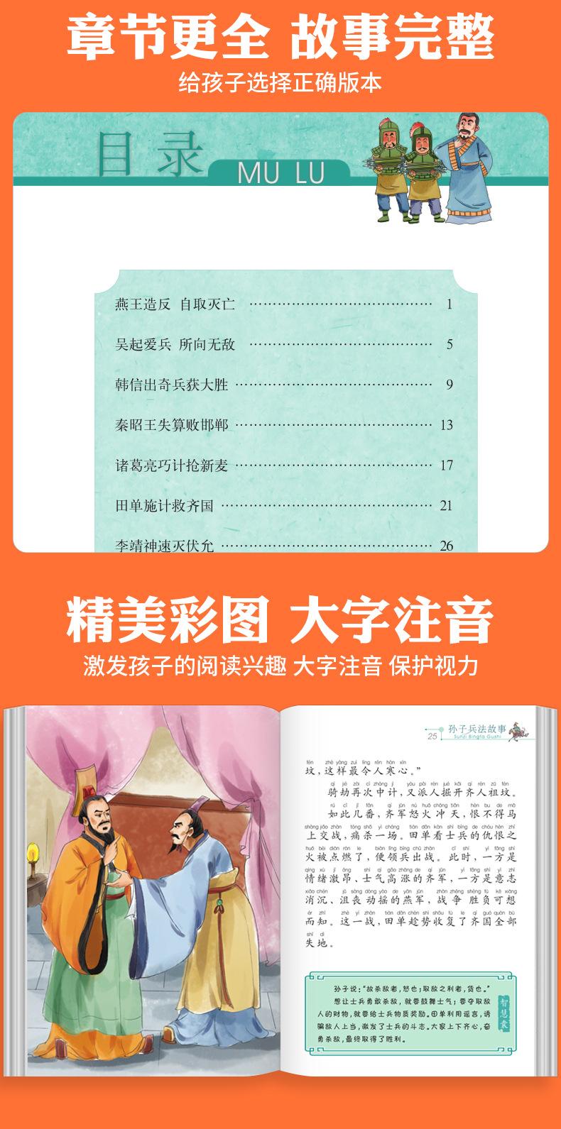 A nova versão da arte da guerra de Sun Tzu, imagem colorida genuína, notação fonética, grau 123, obra-prima da literatura infantil clássica, leitura extracurricular