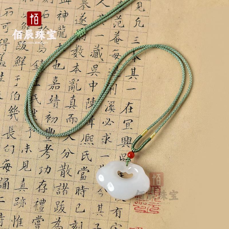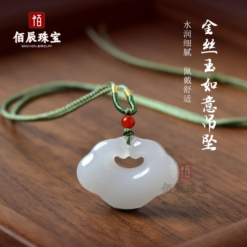 Pingente Cadeado Ruyi de Jade Seda Dourada Natural de Xinjiang Jade Branco Gordura de Carneiro Xiangyun Cadeado da Paz Pingente de Jade para Homens e Mulheres Presente