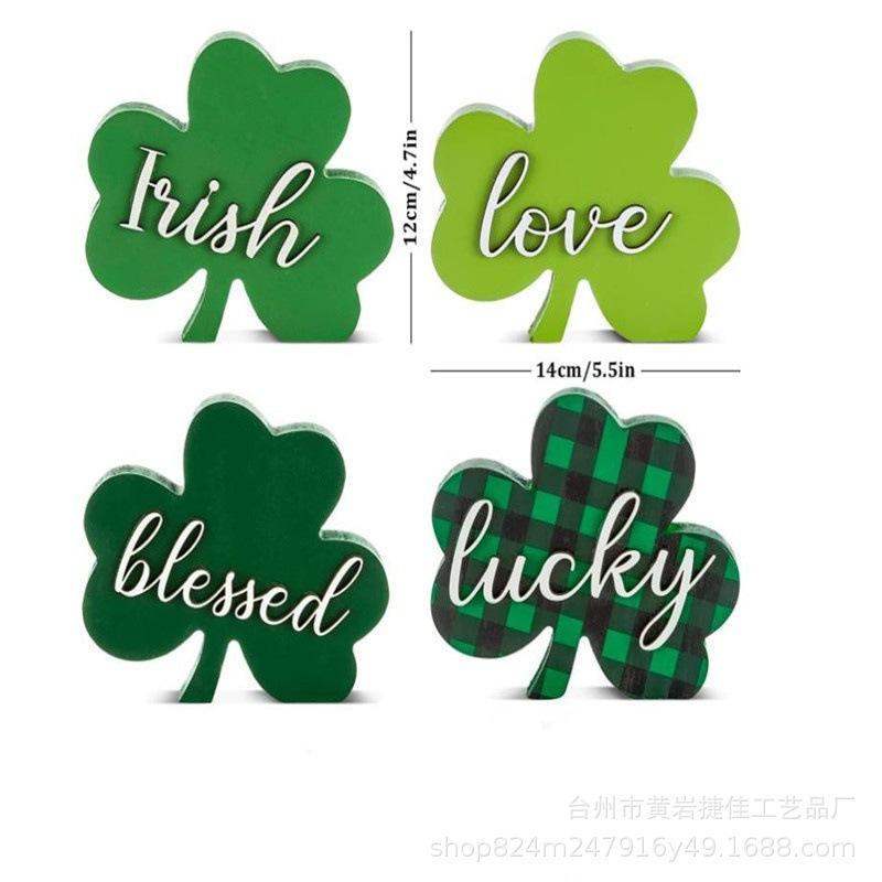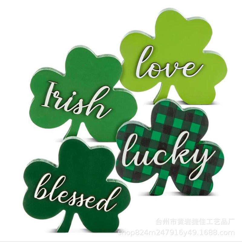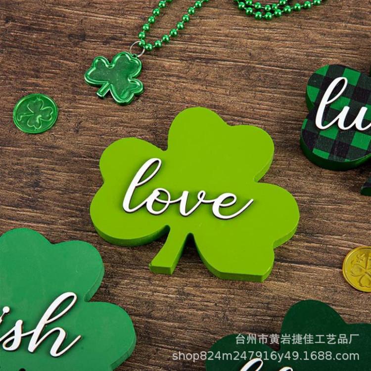 Novos Artesanato em Madeira Ornamentos Trevo Padrão Festival Irlandês Decorativos Ornamentos De Madeira Atacado