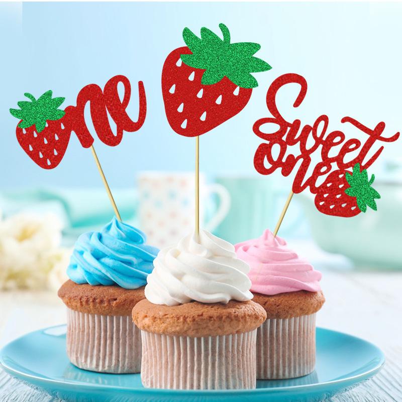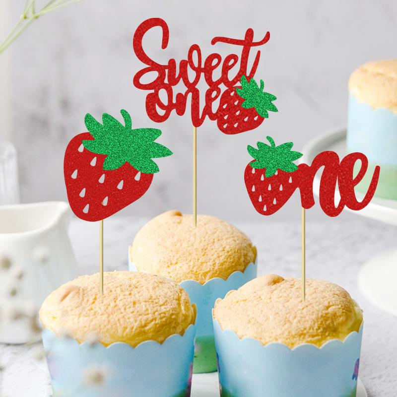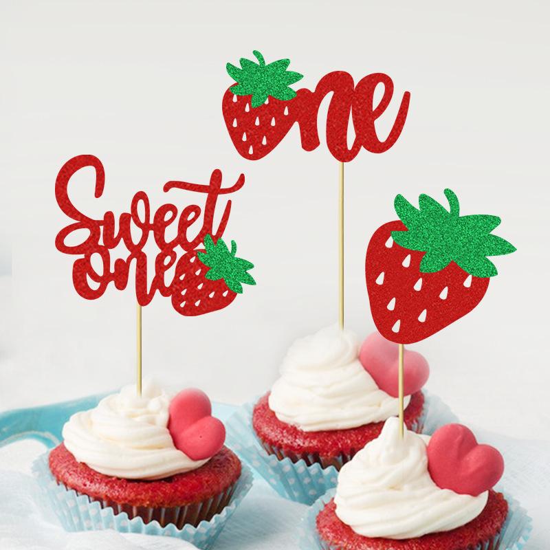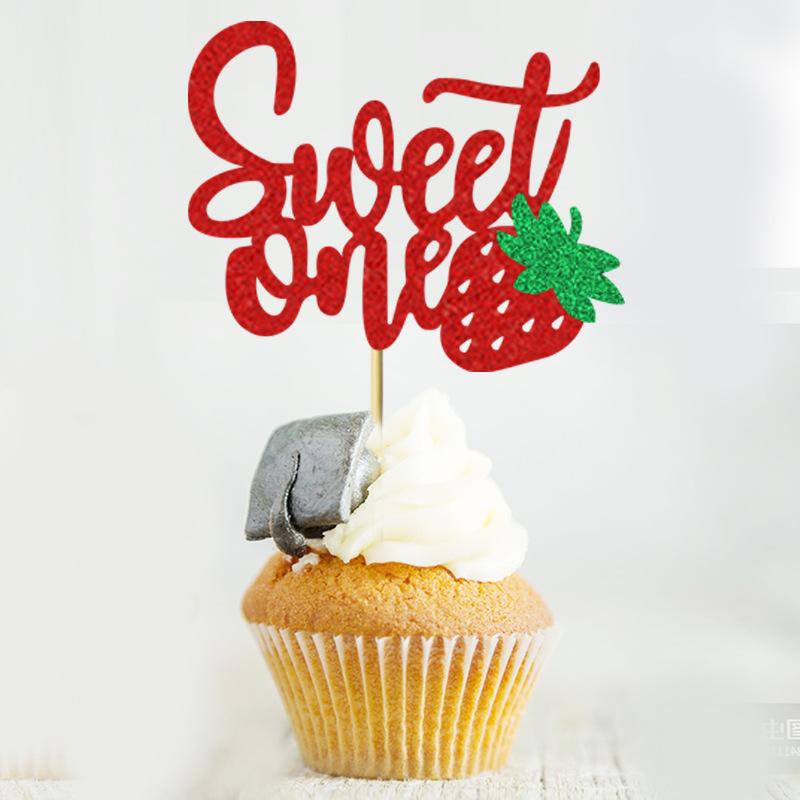 Cupcake cartão de frutas morango aniversário tema decoração de festa verão cross border cake plug-in