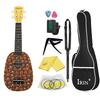 Ponto de venda de uso:Materiais e características: Feito de nogueira fina, tem uma aparência bonita e formato único. Cordas e botões. As cordas usadas em violões pequenos são todas cordas de náilon, que têm forte flexibilidade e longo tempo de eco. Os botões são geralmente de metal, o que é conveniente para afinação. O tom é suave, portátil e compacto, simples e interessante, adequado para todos que amam música. O design exclusivo e requintado do orifício de som torna a qualidade do som mais alta e perfeita.