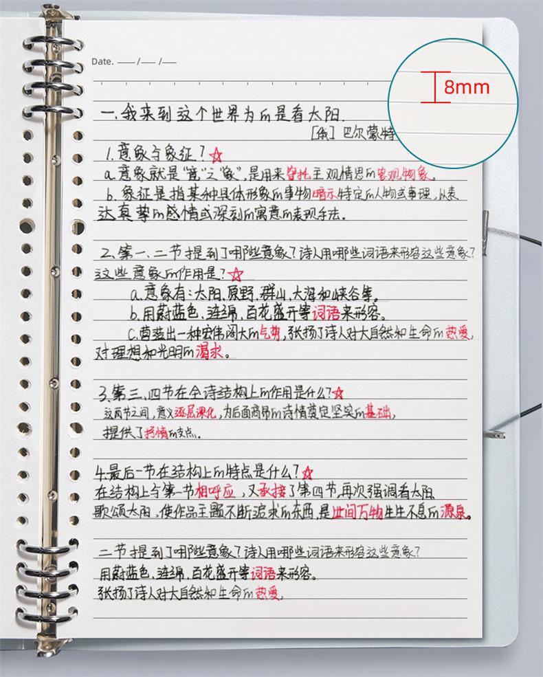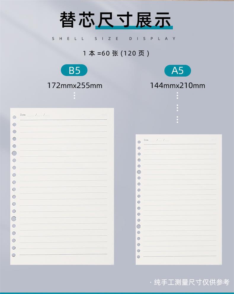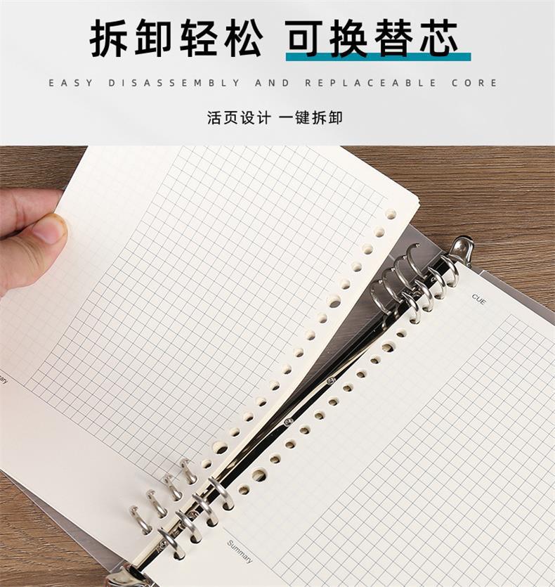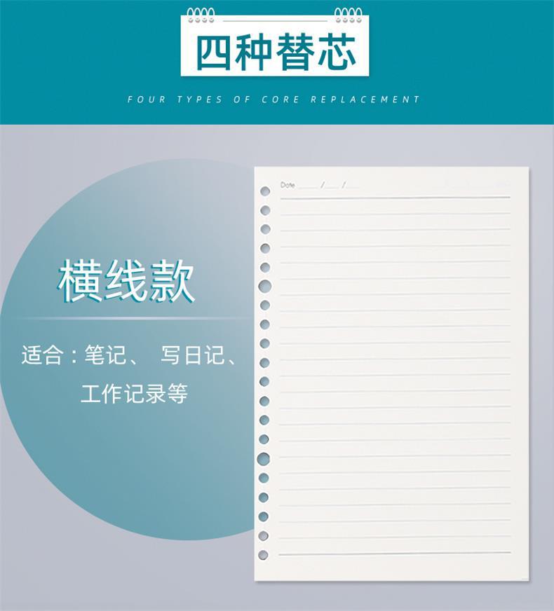 B5 Caderno de folhas soltas removível A4 simples de grande capacidade linha horizontal grossa para estudantes universitários