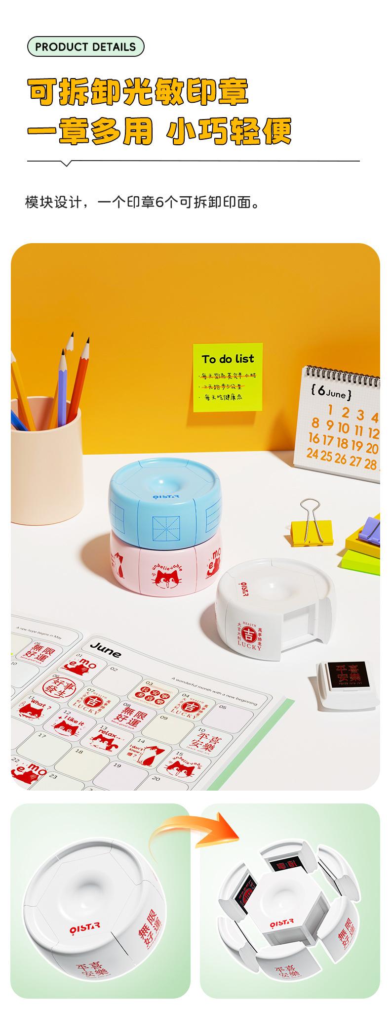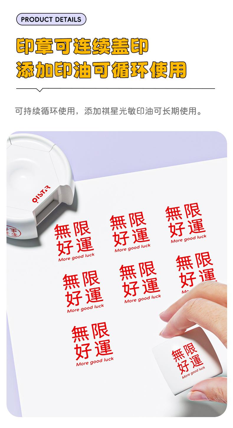 Selo Qi Xing Min Selo Manual de Seis Lados Selo de Bênção Estilo Chinês Selo Infantil Selo de Recompensa Professor Incentivar Alunos