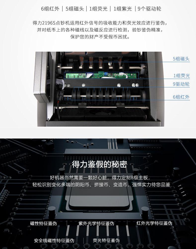Compre Deli 2196S Contador de dinheiro Banco Escritório Especial Detector de dinheiro Caixa registradora inteligente Plug-in Luz roxa Comercial Pequeno no atacado no Joom.pro