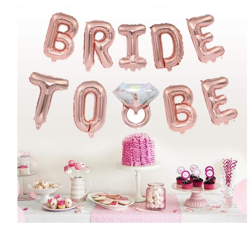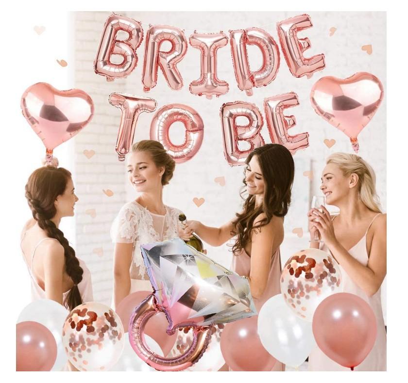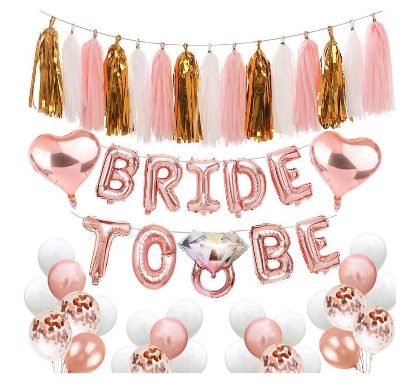 Conjunto de balões para decoração de despedida de solteira, chá de panela, inclui: faixa de noiva vira balão + balão de anel de diamante + balão de alumínio em formato de coração + guirlanda de borla de papel + balão de confete ouro rosa