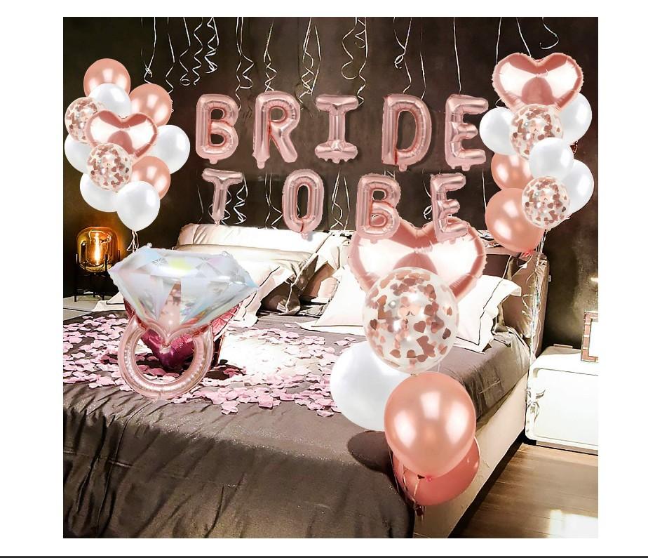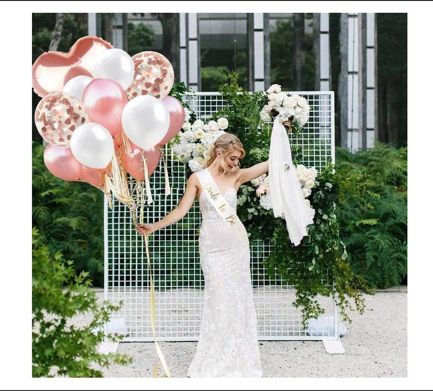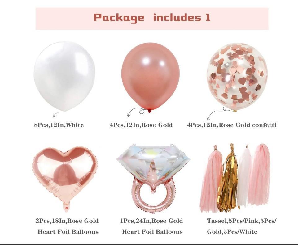 - 【Excelente valor】Usamos materiais de alta qualidade. Prometemos que você não vai querer levar as decorações depois da festa inesquecível. O pacote de balões inclui: balões mylar de noiva de 16" + 2 pedaços de balões de folha de coração de 18" + 1 pedaço de balão de anel de diamante de 24" + 15 pedaços de guirlanda de festa de fluxo de papel + 4 pedaços de balões de arco-íris de ouro rosa de 12"