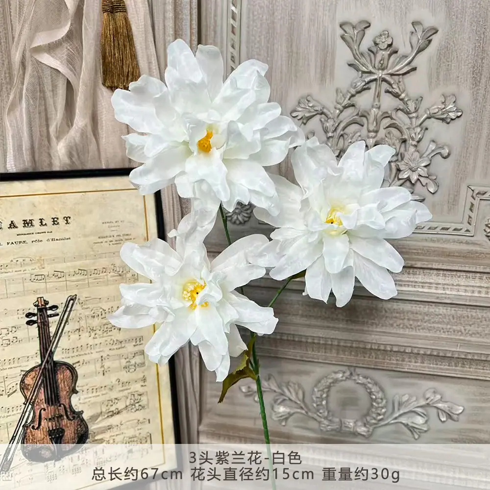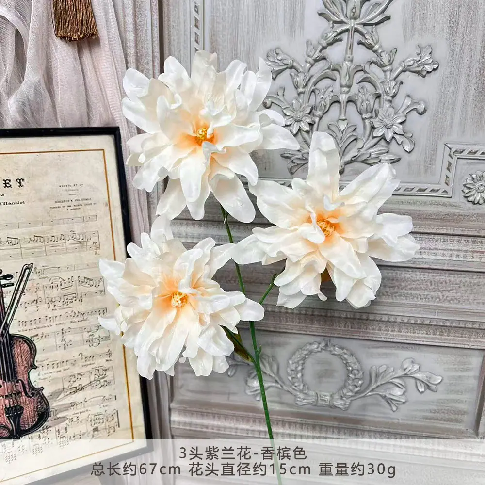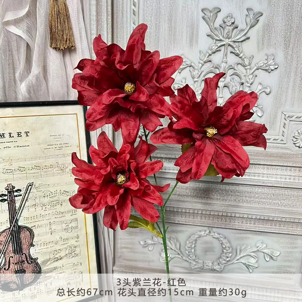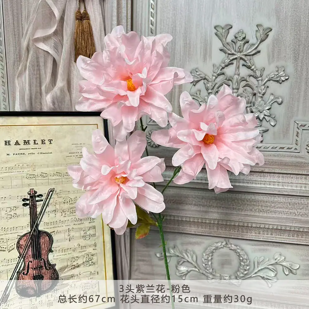 Orquídea Roxa Artificial de 3 Cabeças Flor Falsa Produto Acabado para Decoração de Casamento, Arranjo de Flores para Sala de Estar