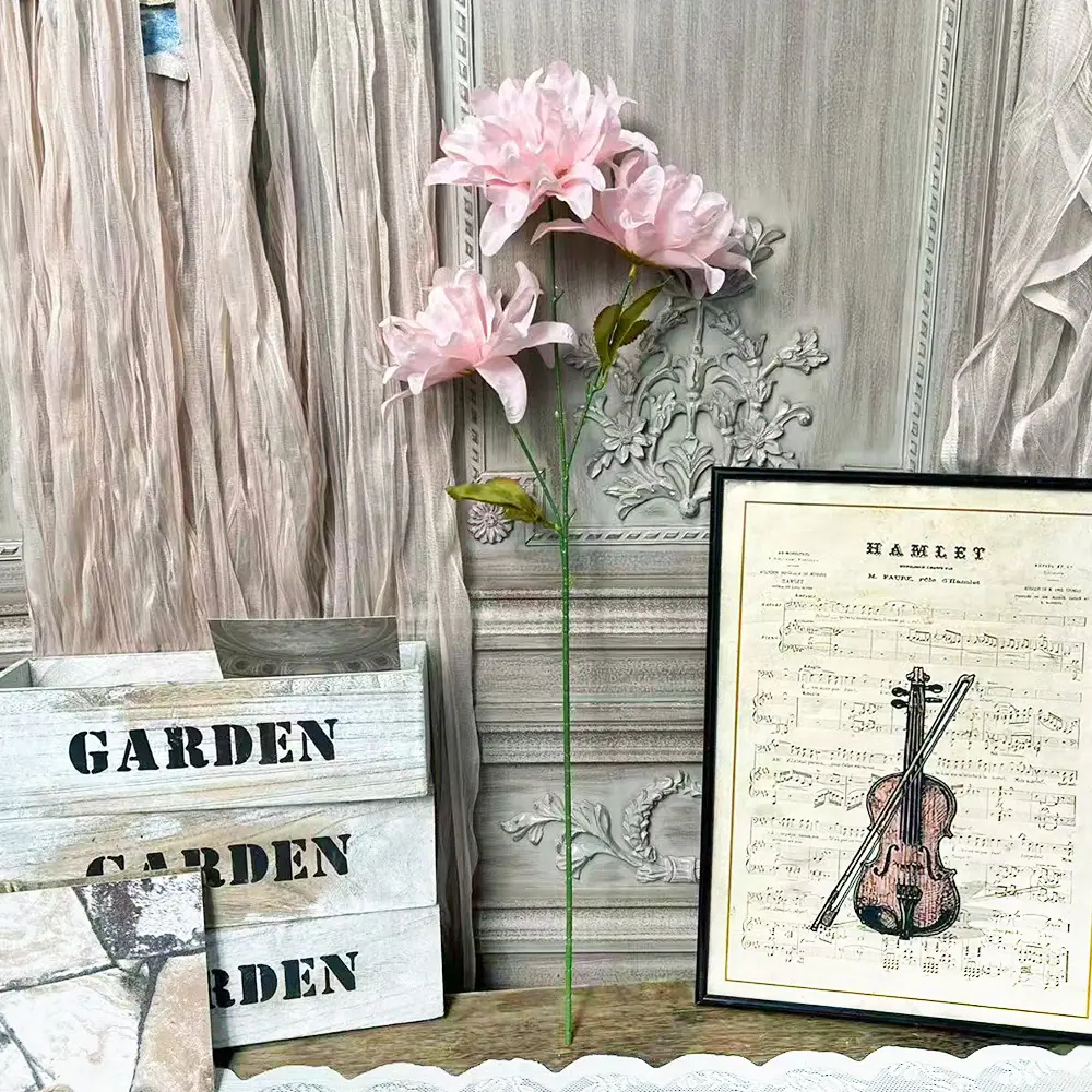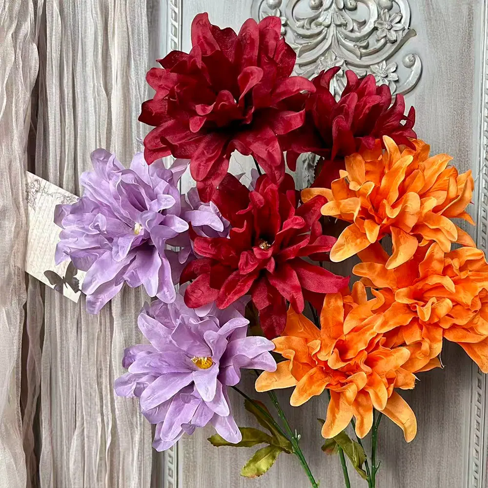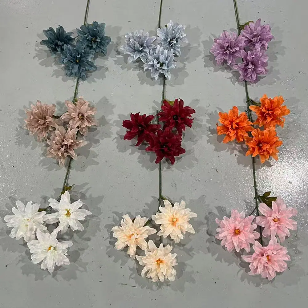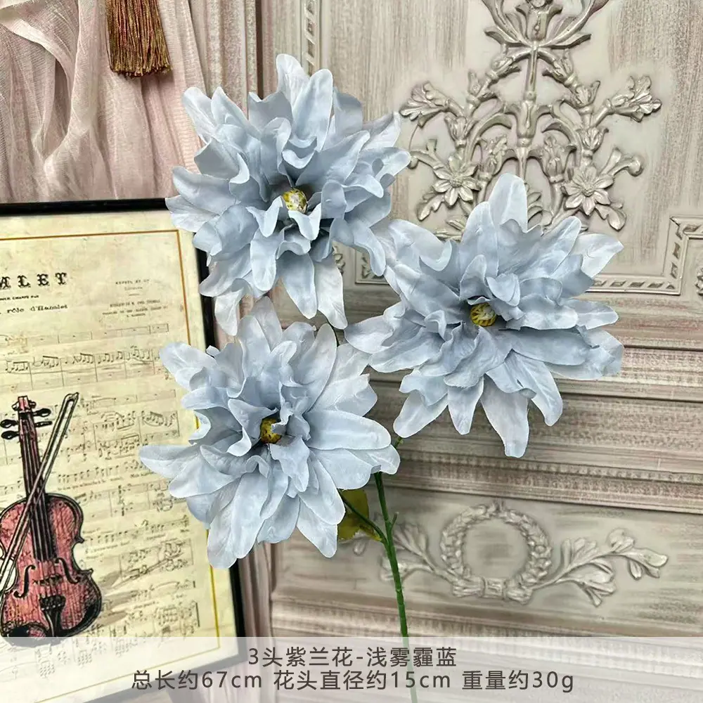 Orquídea Roxa Artificial de 3 Cabeças Flor Falsa Produto Acabado para Decoração de Casamento, Arranjo de Flores para Sala de Estar