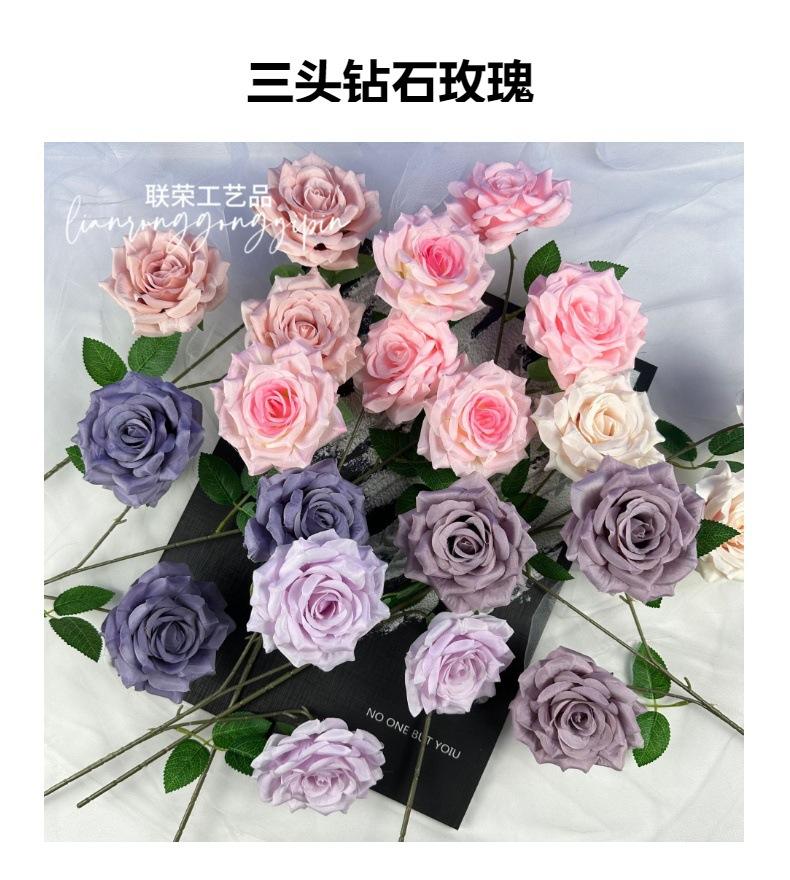 Nova rosa de três cabeças diamante rosa casamento salão de casamento Estrada chumbo flor linha decoração arranjo de flores casa sala de estar arranjo de flores