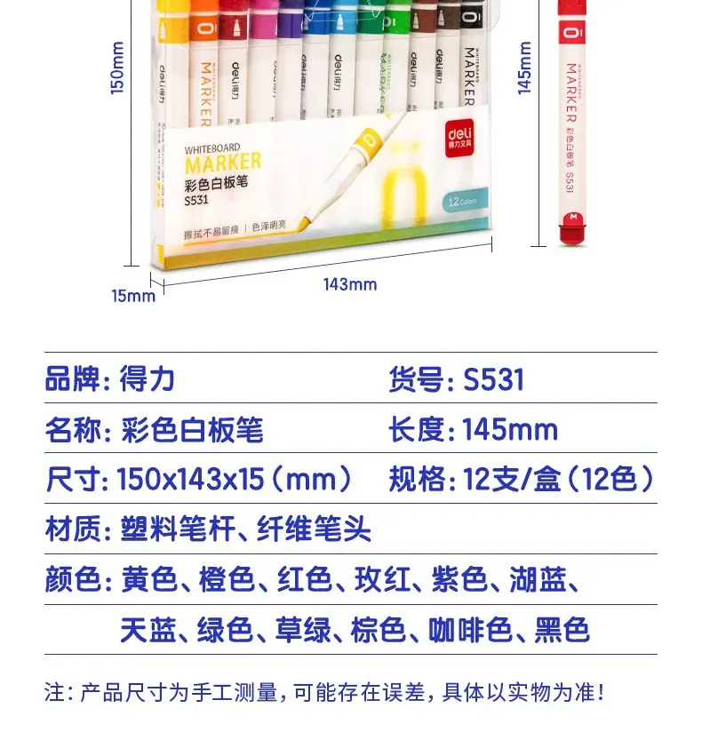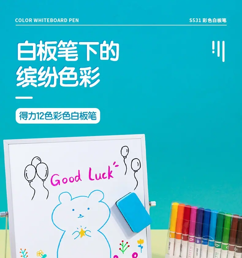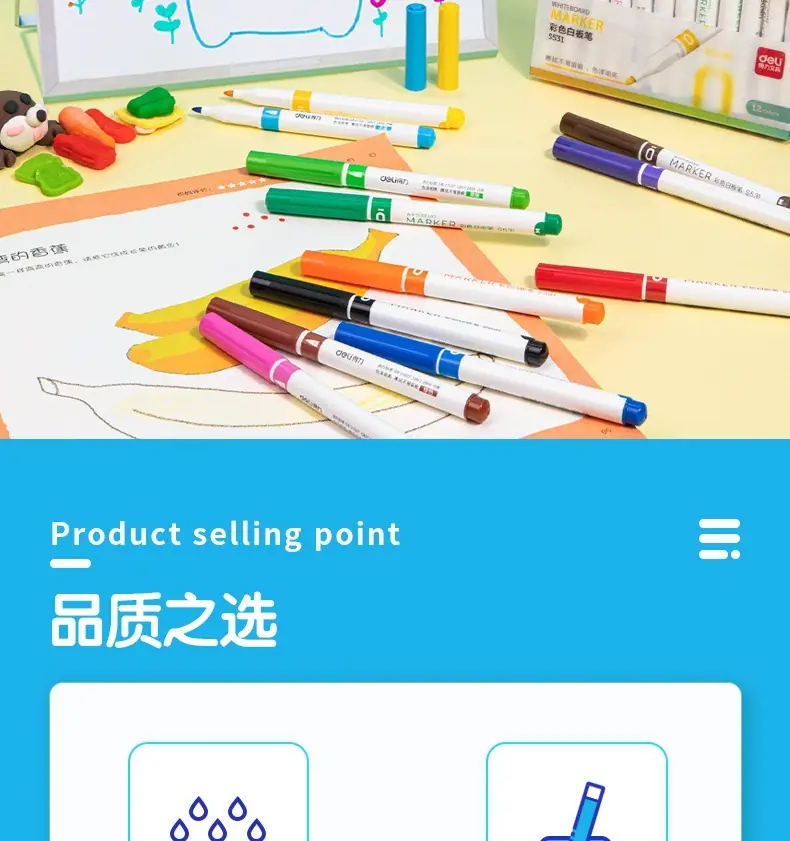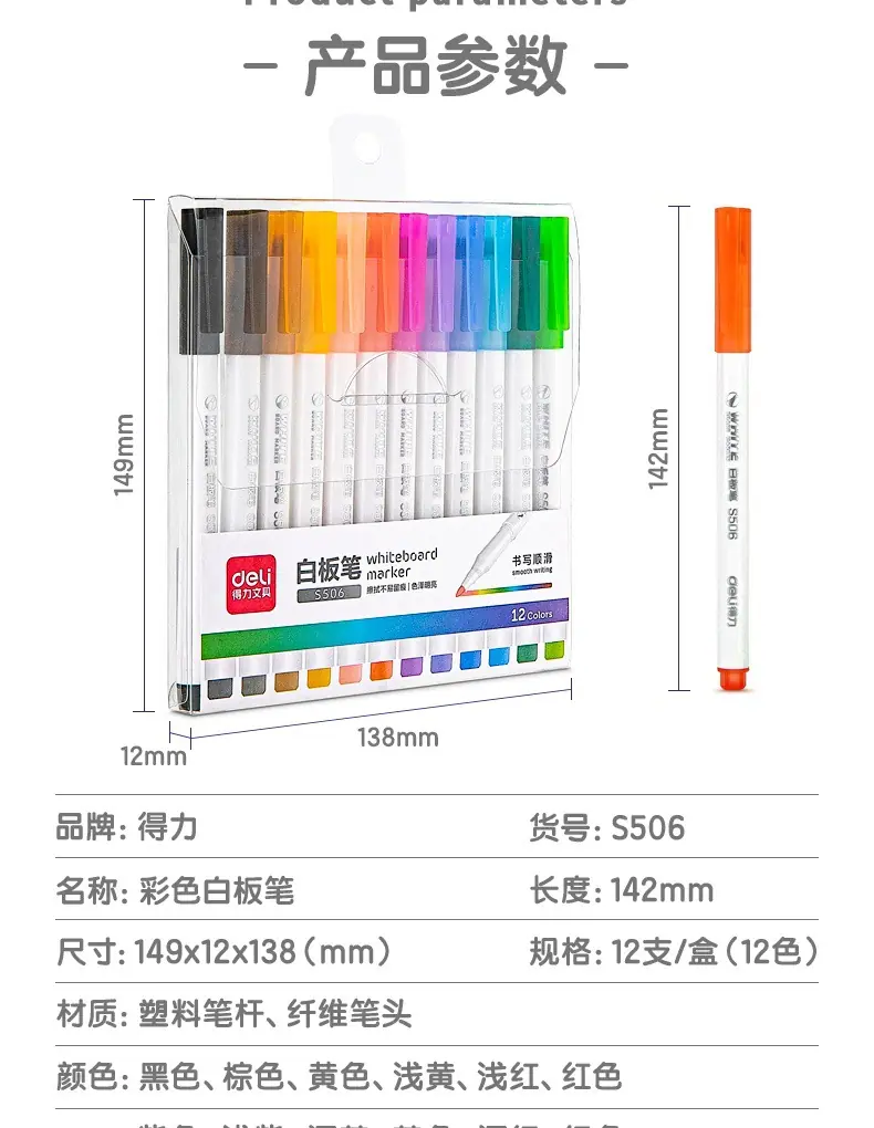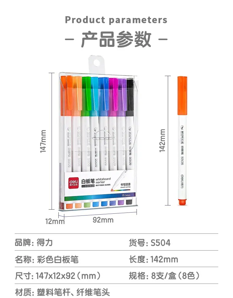 Marcadores Coloridos para Quadro Branco Série Deli S504/S506/S531 8/12 Cores Canetas de Desenho Apagáveis para Crianças Ponta Larga à Base de Água