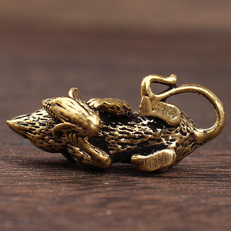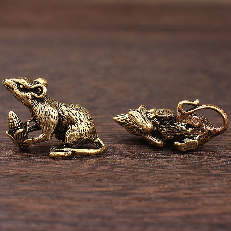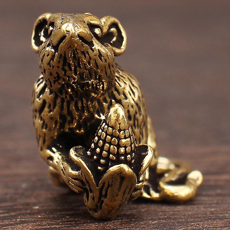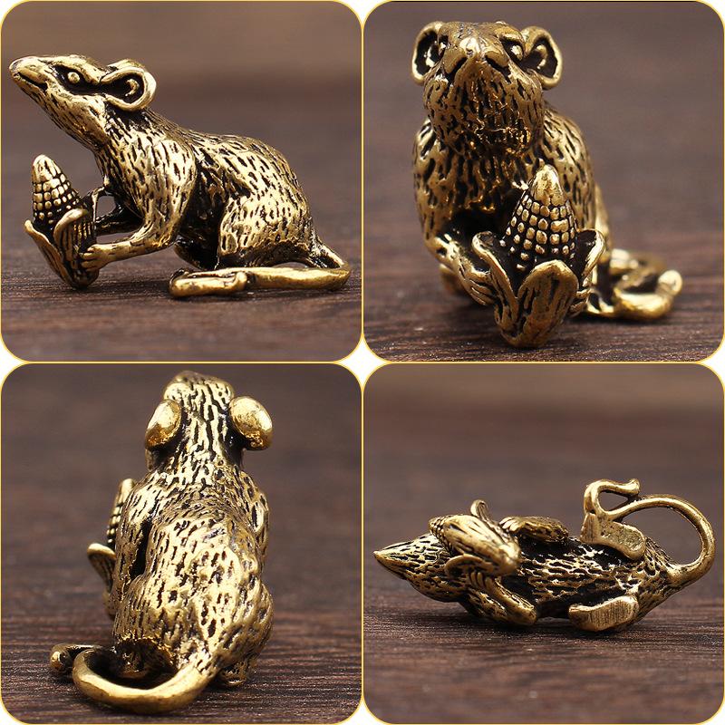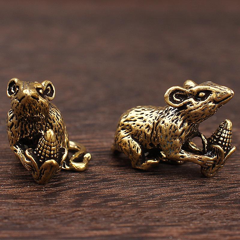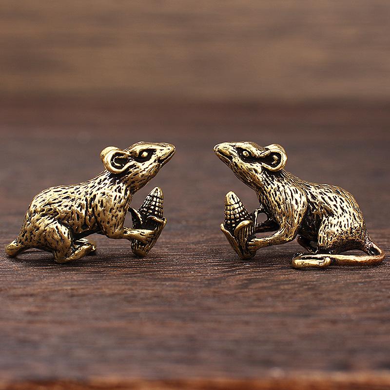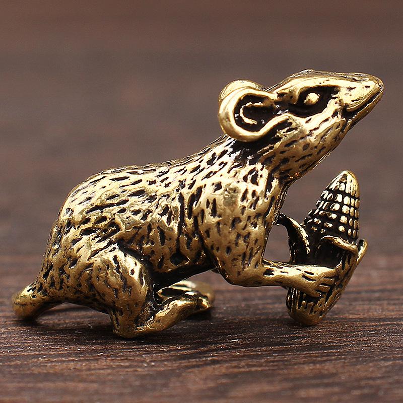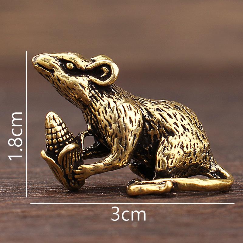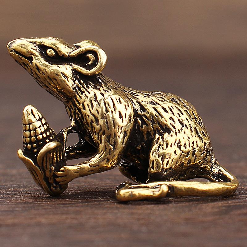Rato do Zodíaco de Latão Pequenos Ornamentos de Bronze Ware Barraca Artesanato de Metal Produtos de Cobre Puro Presente Rato Segurando Milho